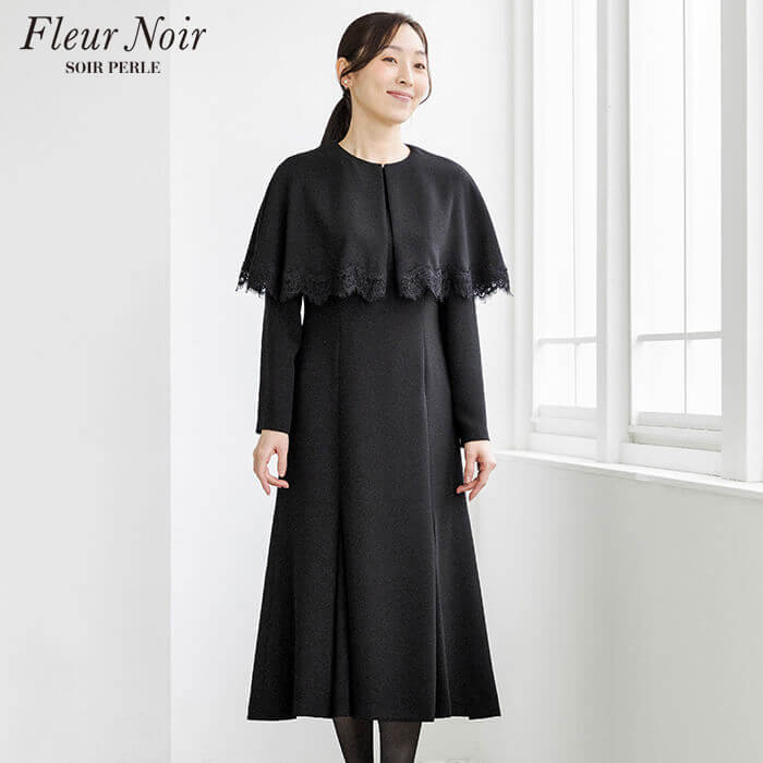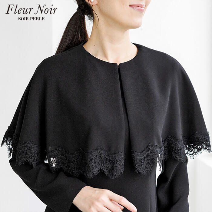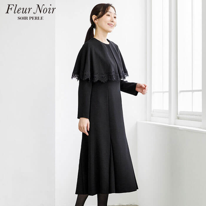 「Fleur Noir SOIR PERLE」ケープ付きのロング丈ワンピース