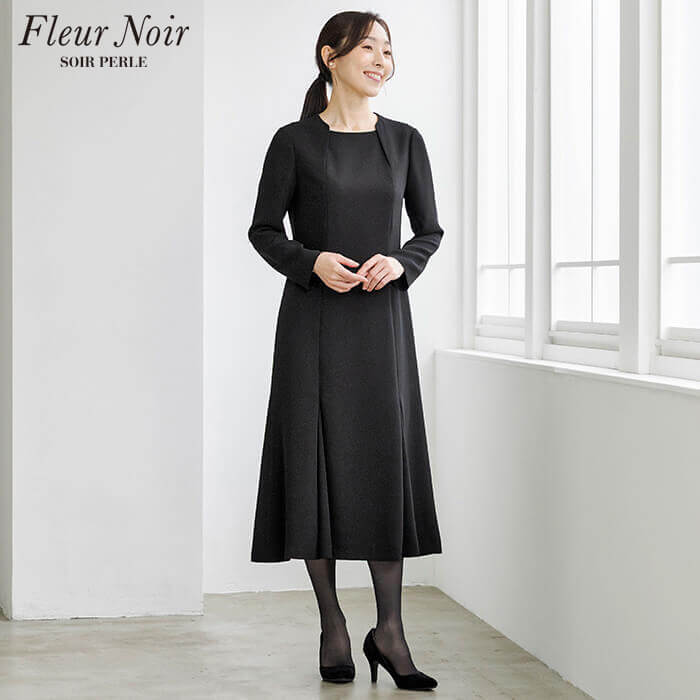 濃染加工による深い漆黒と、ふくらはぎまで隠れるロング丈は、喪主やご親族の装いとしても安心。 アクセサリーを添えることで、卒業式・入学式などの礼服としても着回せる汎用性の高い一着です。 喪服としてはもちろん、アクセサリーやスカーフを添えて、卒業式・入学式の礼服・式服など冠婚葬祭に着まわせます。