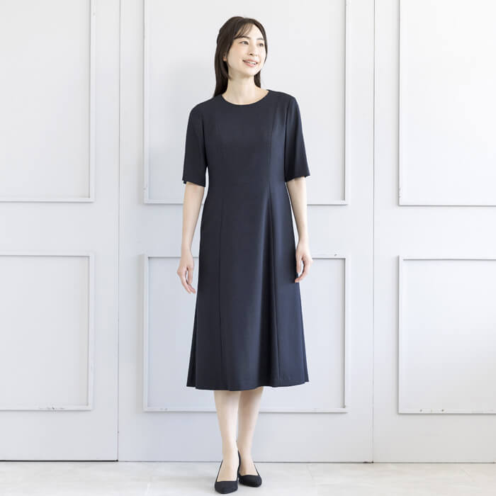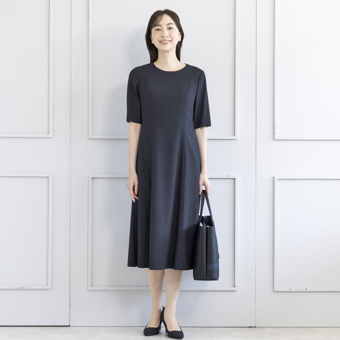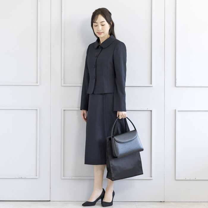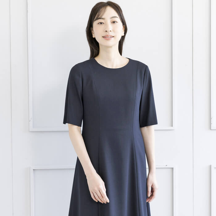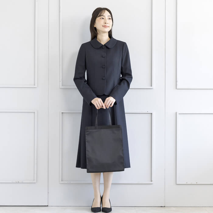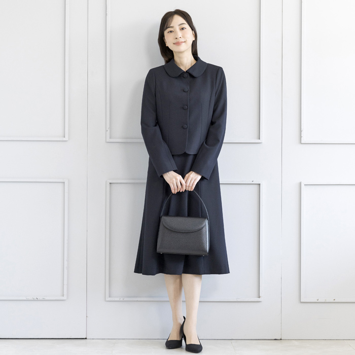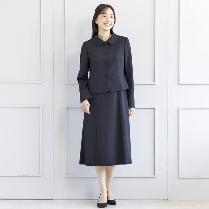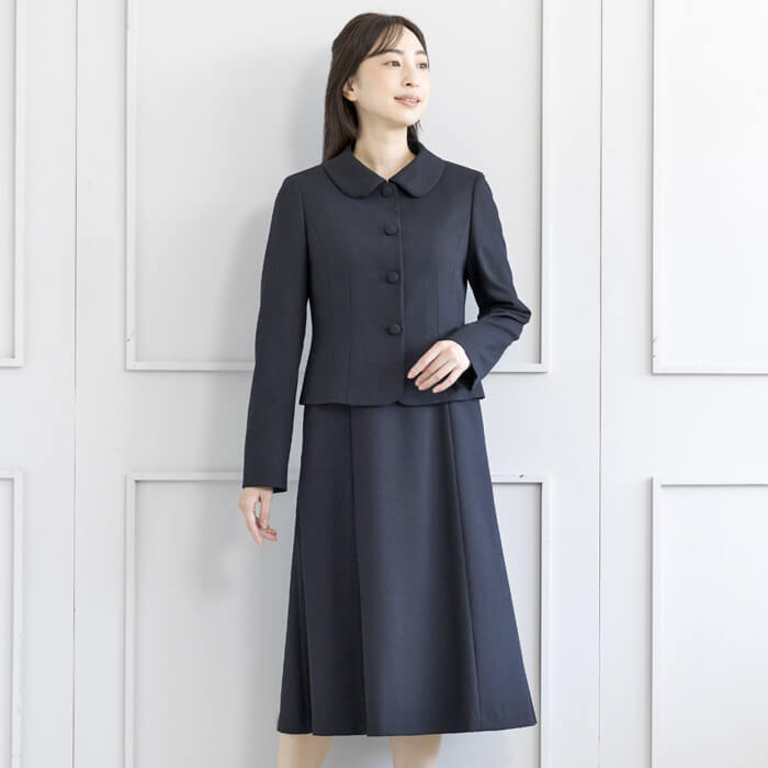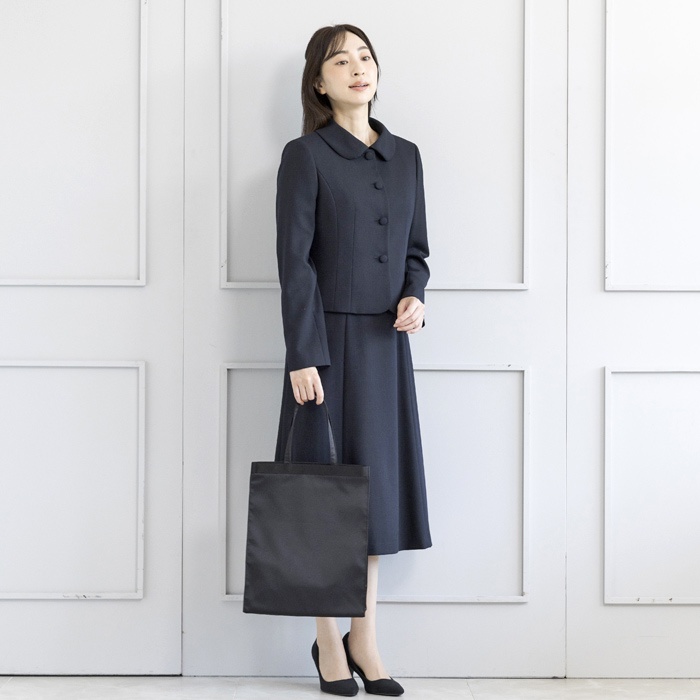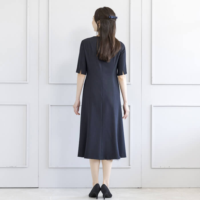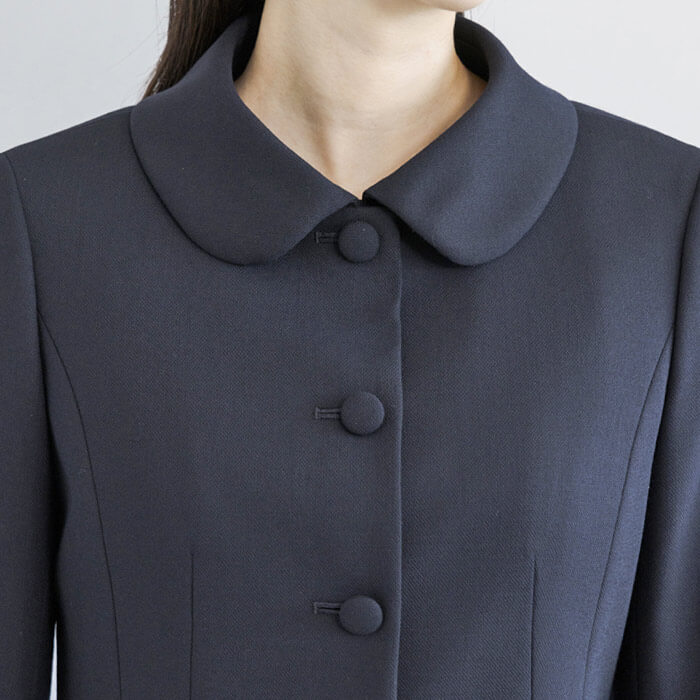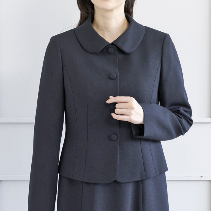 ジャケットは、お受験スーツの象徴ともいえるショールカラーを採用。 フロントは共生地のくるみ四つボタンで静かな品格を添えました。 ワンピースは、動きやすさと見た目の美しさを両立した袖丈設計。 二の腕を自然にカバーし、着用時の所作まで美しく見せます。 控えめなAラインのスカートは、立ち姿・着席時ともに端正な印象を保ちます。 左右に配したポケットにより、ワンピース一枚での着用時も実用性を損ないません。 細部まで計算された設計により、どの角度から見ても整った佇まいを実現。 装いへの不安を感じさせず、お子様と向き合う大切な時間に集中していただける一着です。