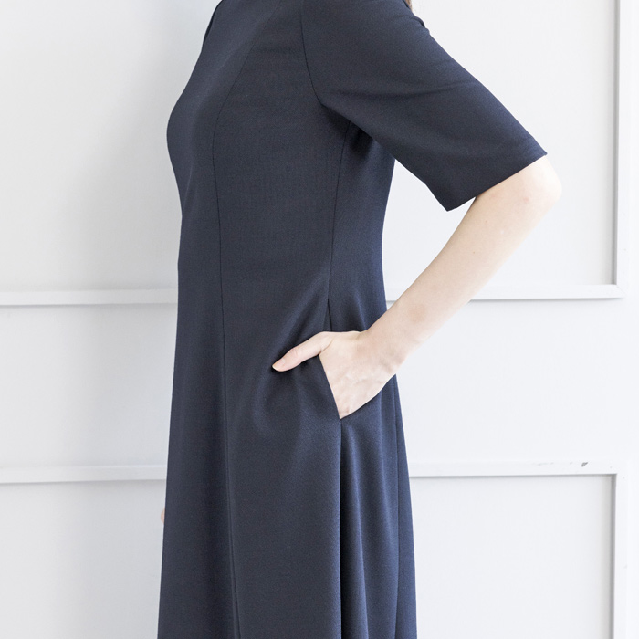 ワンピースの両脇にポケットがついています。 要望の多い便利な機能です。