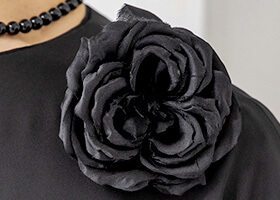ランバンノワールらしいコサージュは取り外し可能。シーンによって雰囲気を変えたい時に、ぜひ取り入れて。