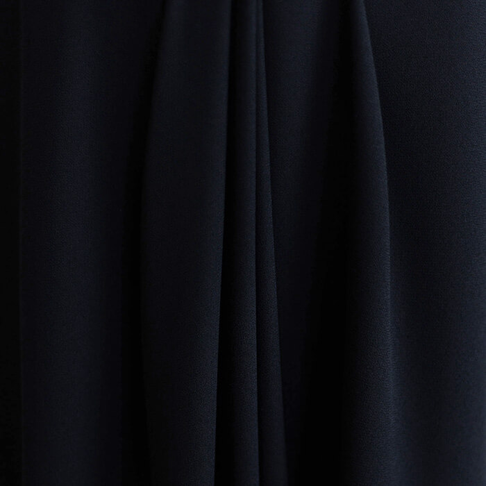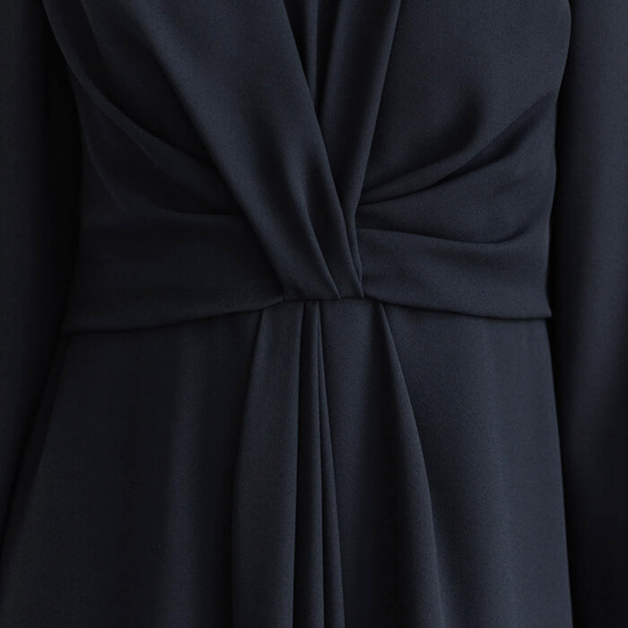フロントに施したねじりディティ―ルが美しいドレープを生む1着。手作業による繊細がな立体感が上質さを際立たせます。