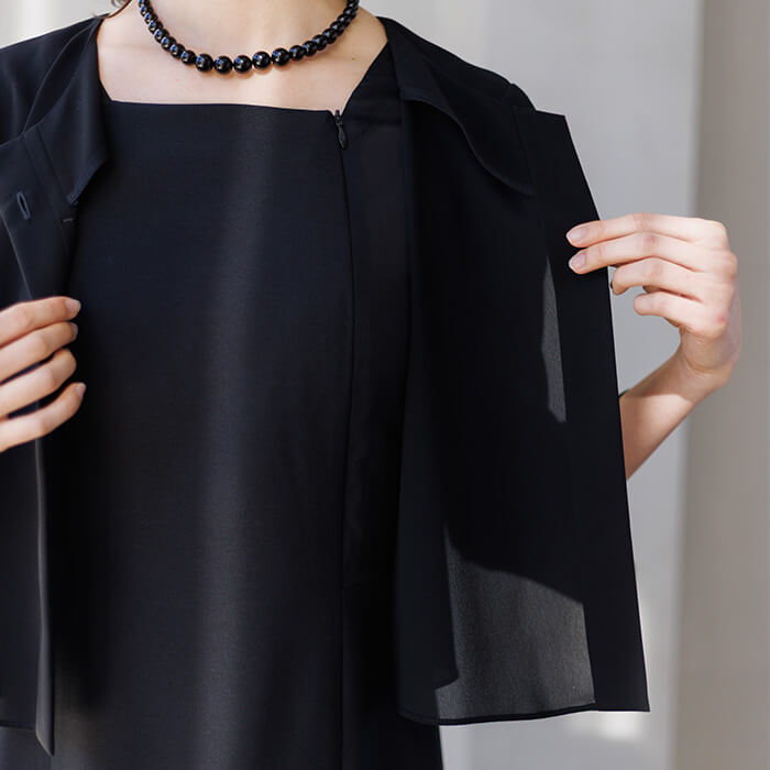 ご葬儀、法事、お別れの会などにおすすめです。表地には濃染加工を施した漆黒の生地を、裏地には吸湿性に優れたキュプラ素材を使用しました。オールシーズンご着用できます。