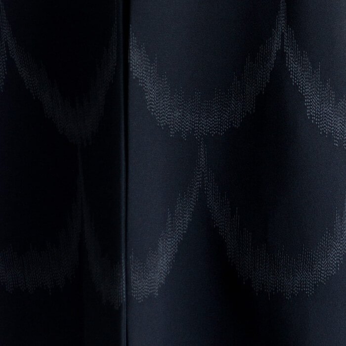 ジャンヌ・ランバンのアーカイブに着想を得た刺繍が裾を彩り、光にあたると、ランバンノワールらしいモダンでエレガントな柄が浮かび上がります。