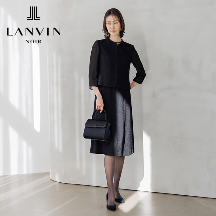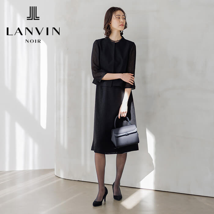 時代に流されない美意識とモダンな感性を持つ大人の女性に向けたLANVIN NOIR。 米沢産の絡み織で仕立てたスーツ風一枚仕立てのトリックワンピース。