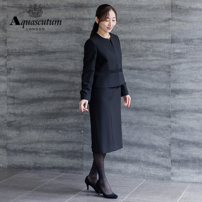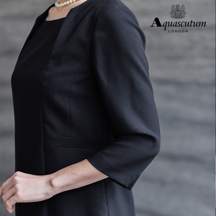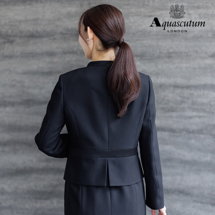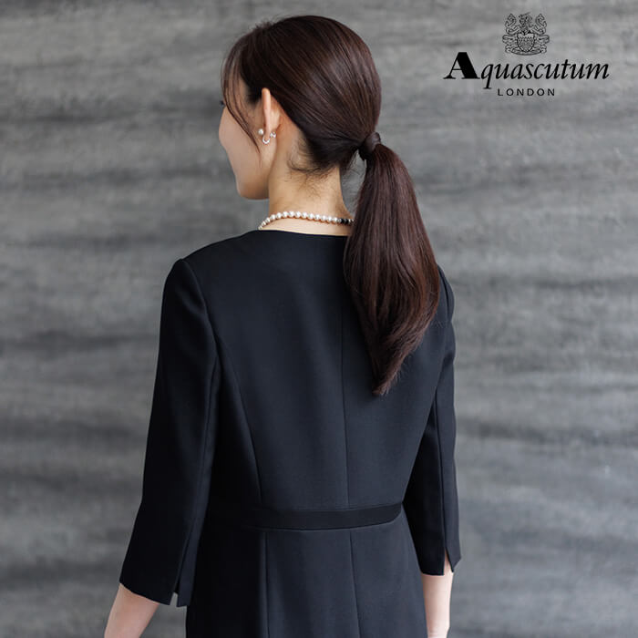 英国の名門ブランドとして170年以上の歴史を誇るアクアスキュータム。 伝統とモダンエレガンスを融合させ、丁寧に仕立てたブラックフォーマルアンサンブルをご提案します。