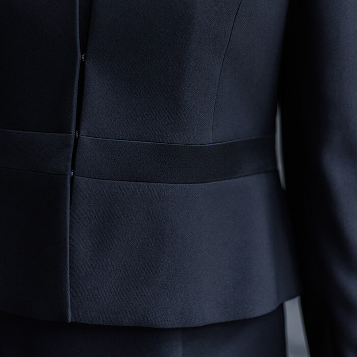 無駄のないシルエットと端正なカッティングが生み出す気品は、見る角度によって表情を変えながらも、常に「きちんとした佇まい」を保ちます。 過度な装飾をそぎ落としトレンドに左右されないデザインは、初めてのフォーマルにも、長く愛用する1着としても最適です。