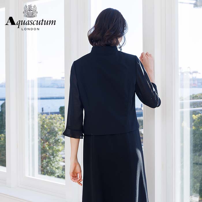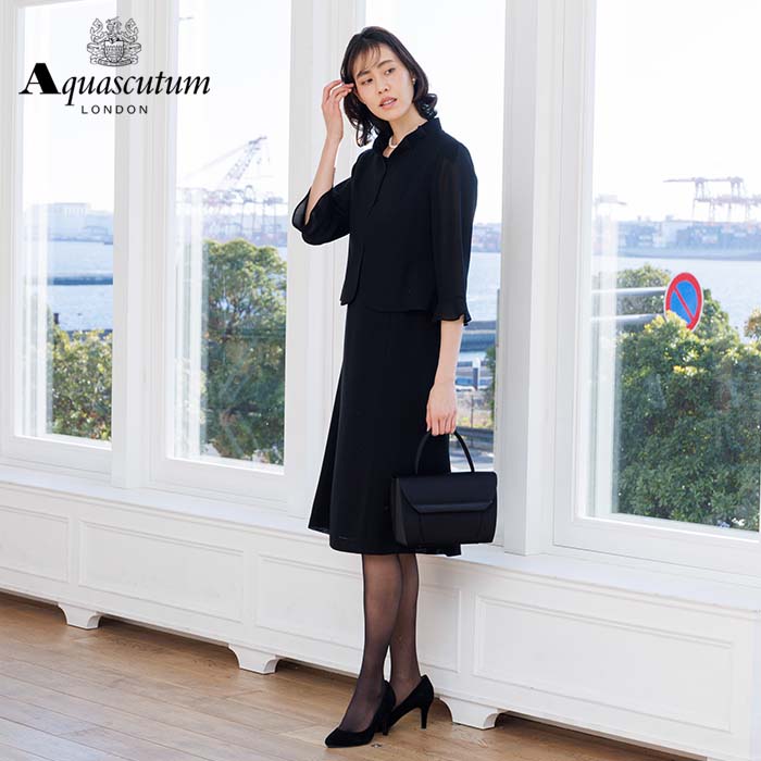 170年以上の歴史と高い認知度を持つ伝統ブランド「アクアスキュータム」のエッセンスを踏襲しながら上質を知る女性に向けて提案するブラックフォーマル。