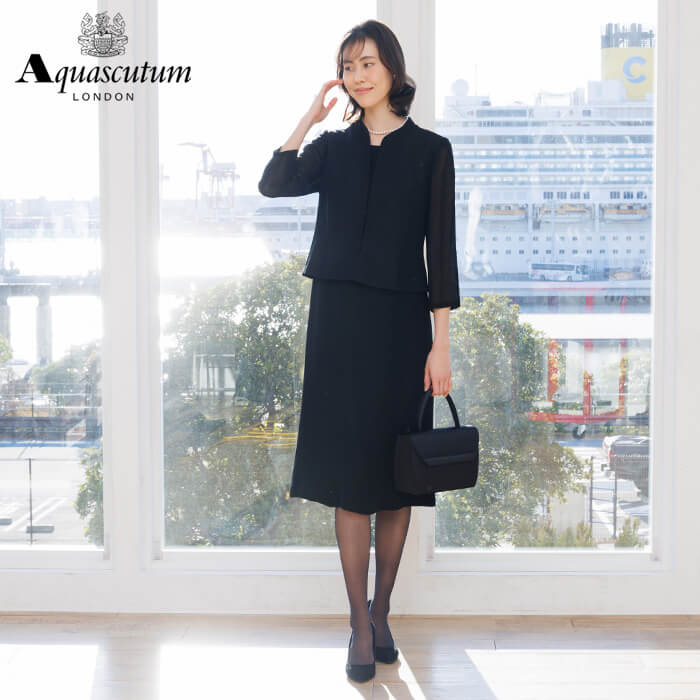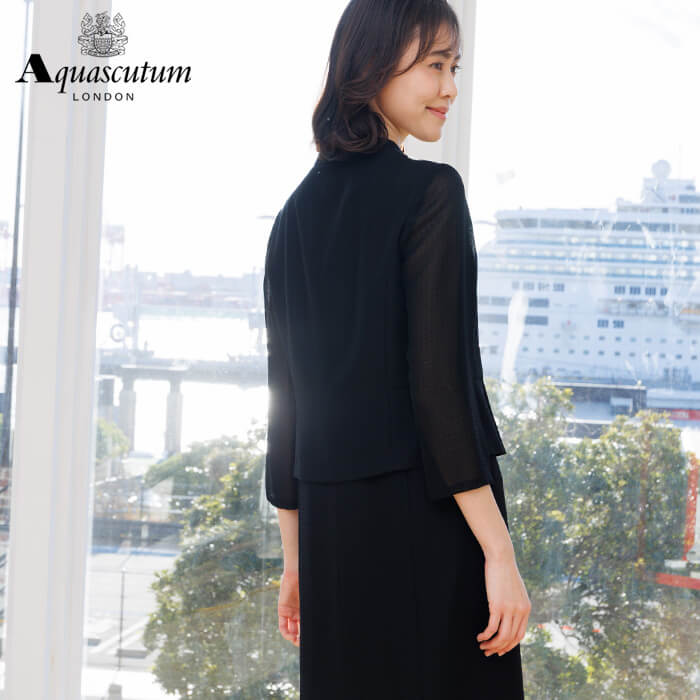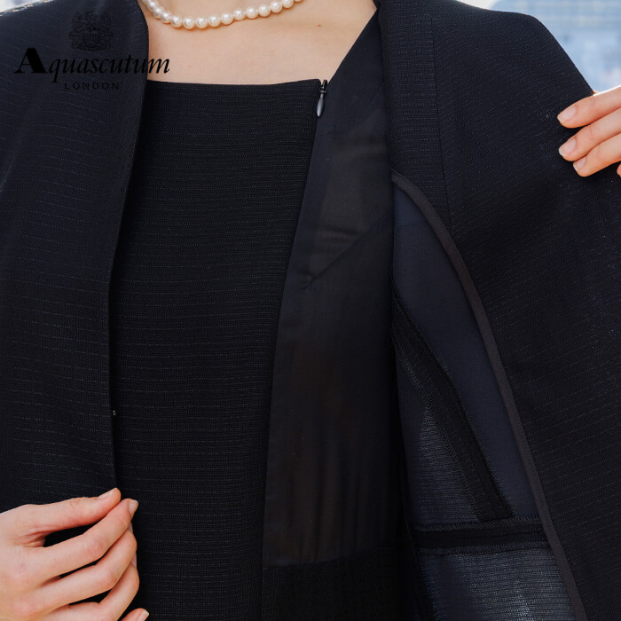 160年以上の歴史を持つアクアスキュータムのエッセンスを踏襲し上質を知る女性に提案するブラックフォーマルコレクション。