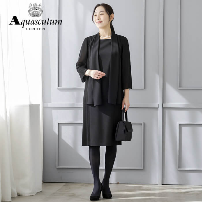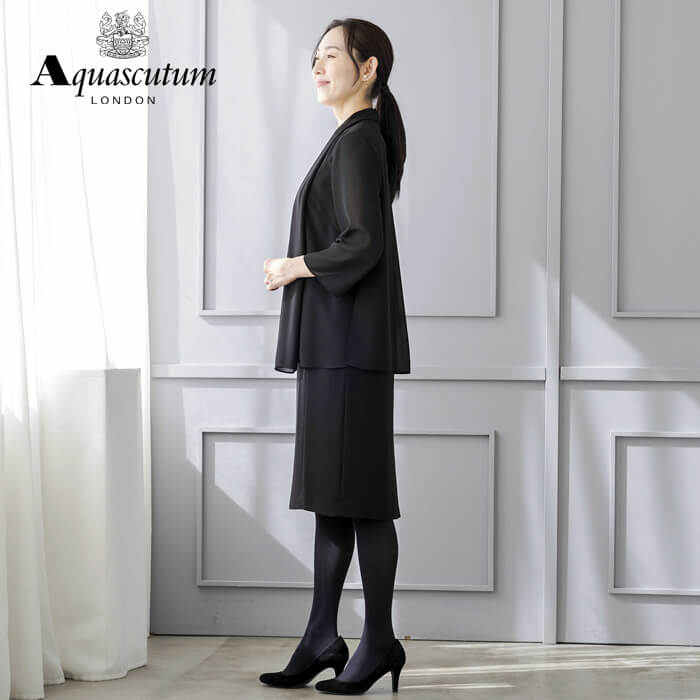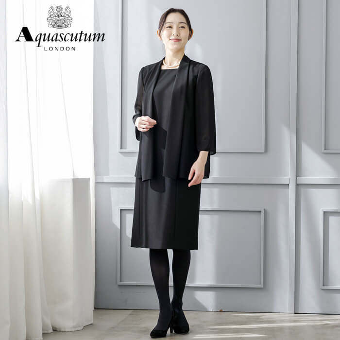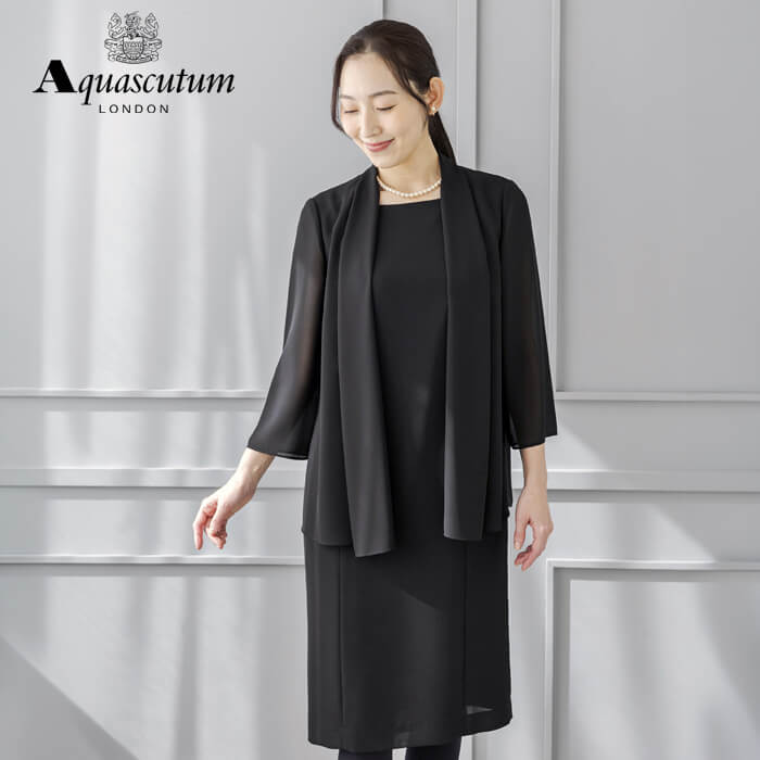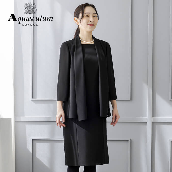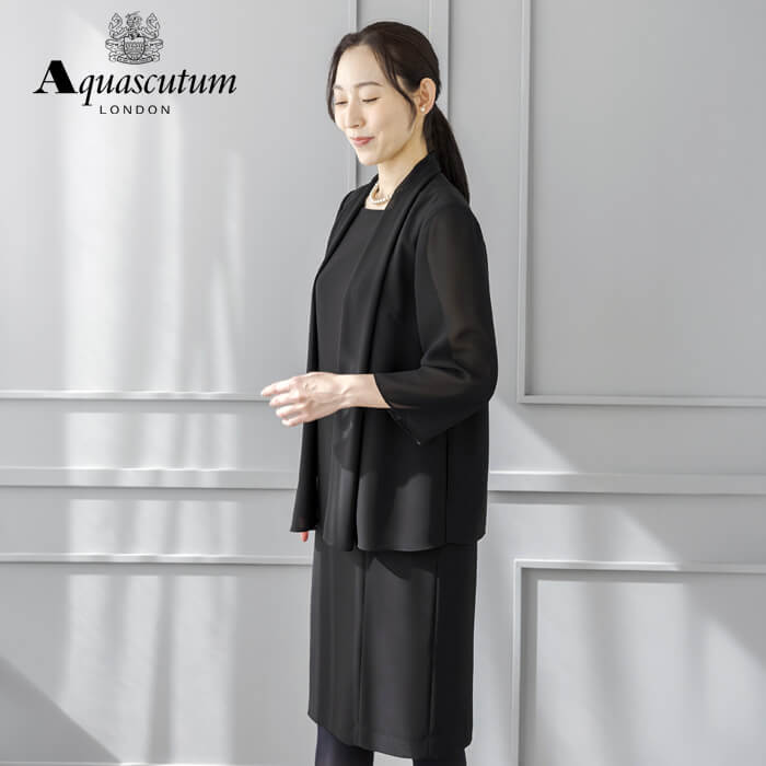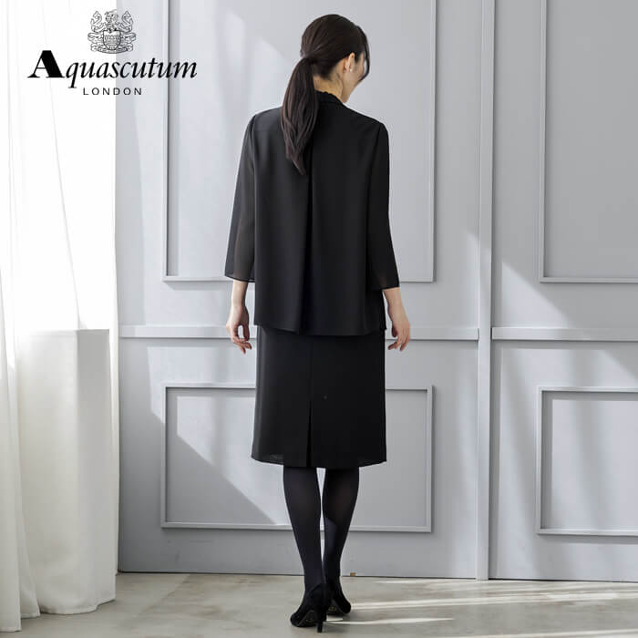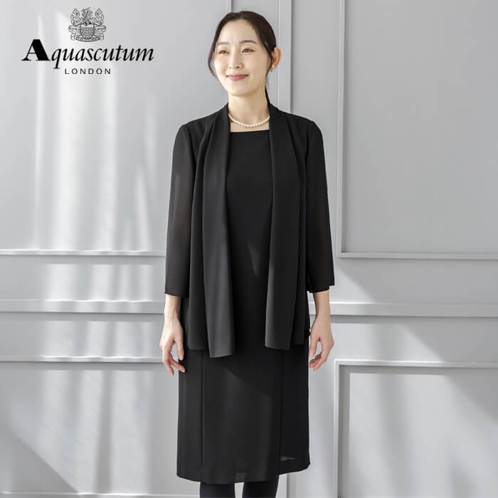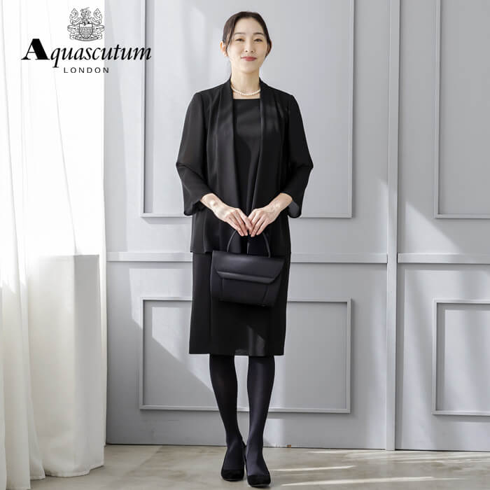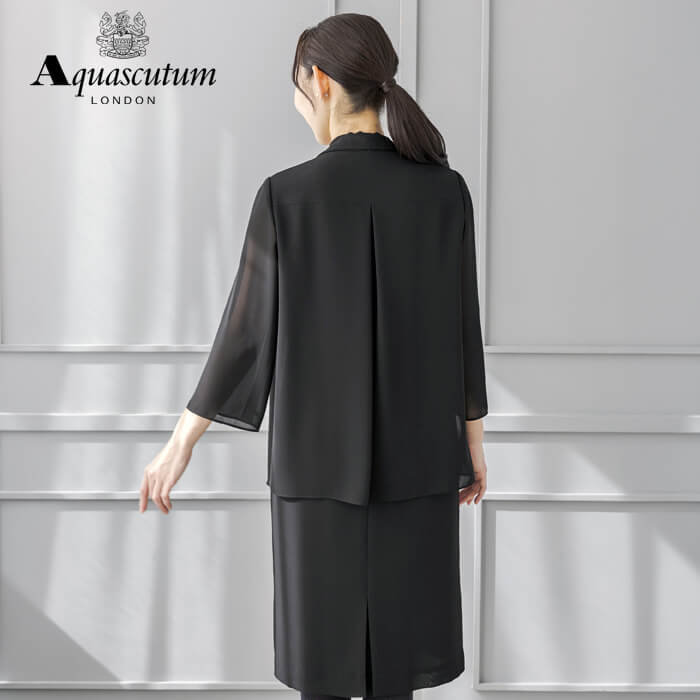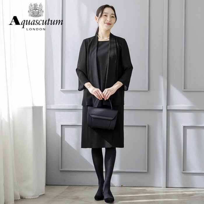 170年以上の歴史を持つアクアスキュータムのエッセンスを踏襲し上質を知る女性に提案するブラックフォーマルコレクション。