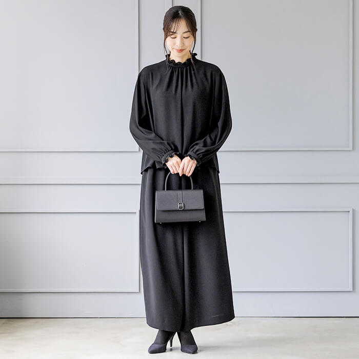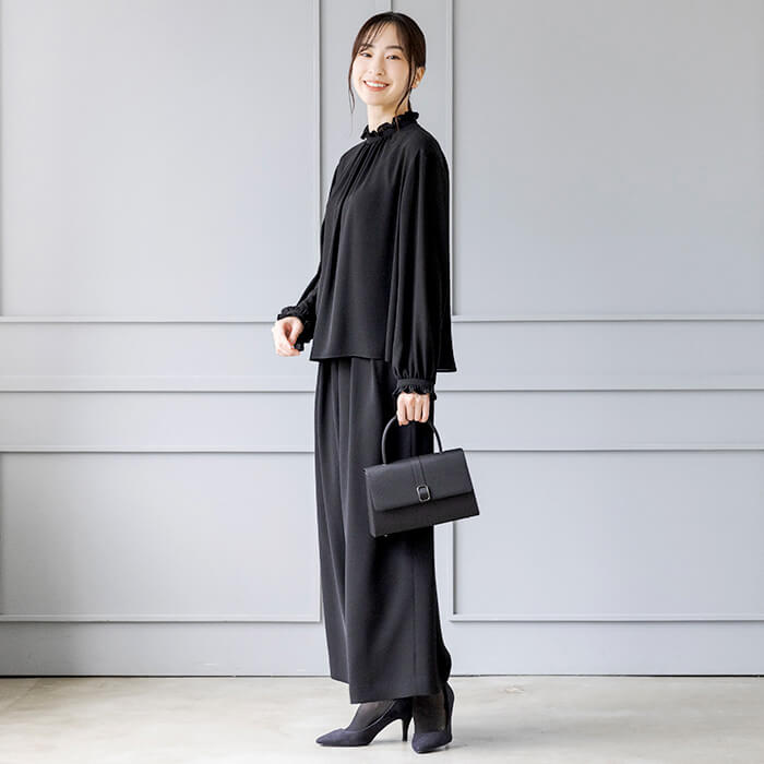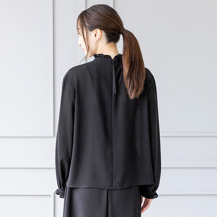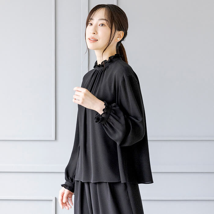 変化するご葬儀のスタイルに合わせ、どんな喪のシーンにもなじむブラックフォーマルブラウス。