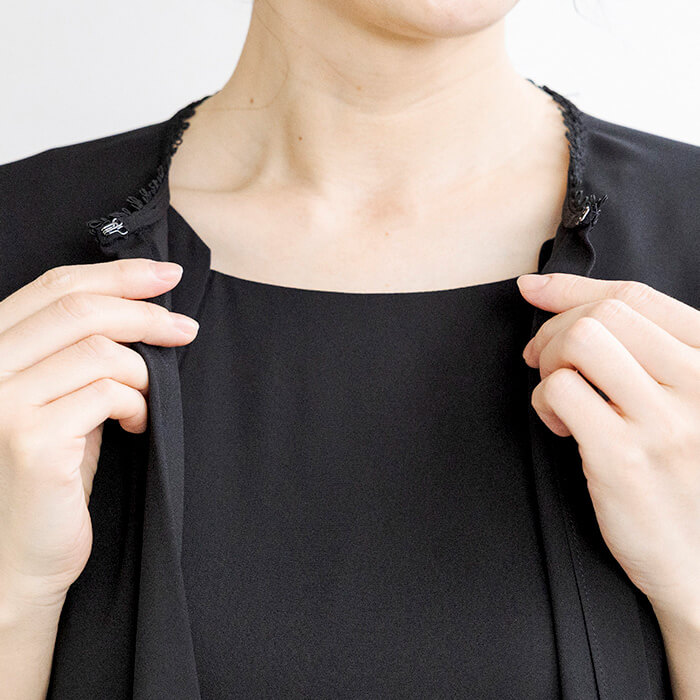 ■襟ぐりのブレードがポイント