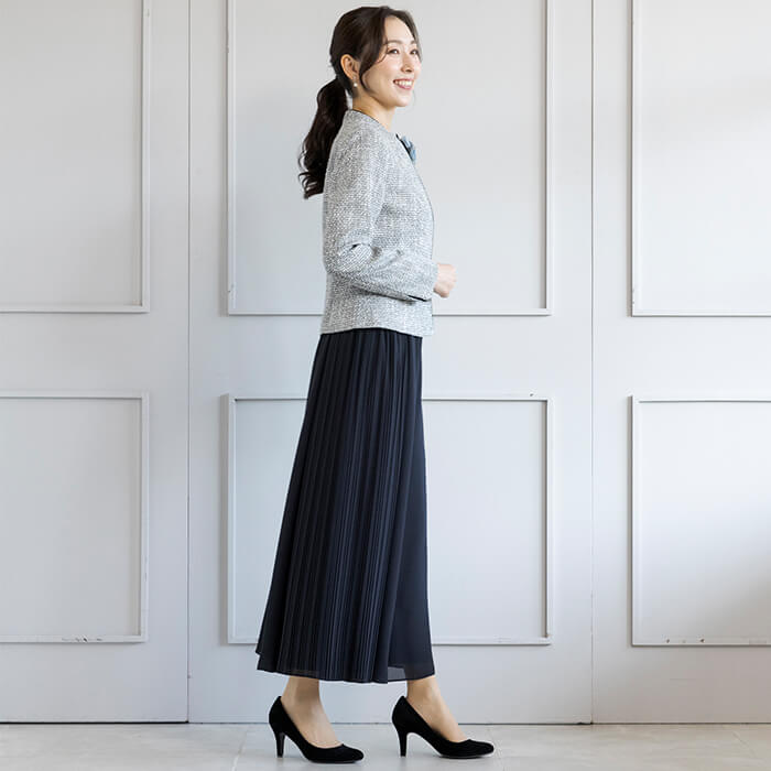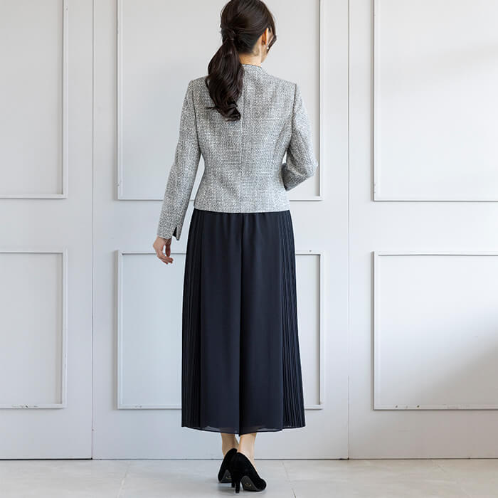 ウエストはゴム仕様なので、穿きやすく着心地も快適。長時間の式典やお食事の際にも安心です。 ウエストのフロント部分はギャザーが寄らないため、すっきりとした見た目になっています。