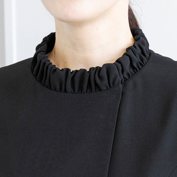 ワンピースの襟は首回りを優しくカバーするデザイン。
