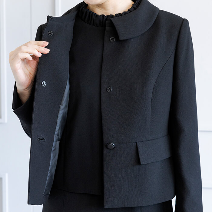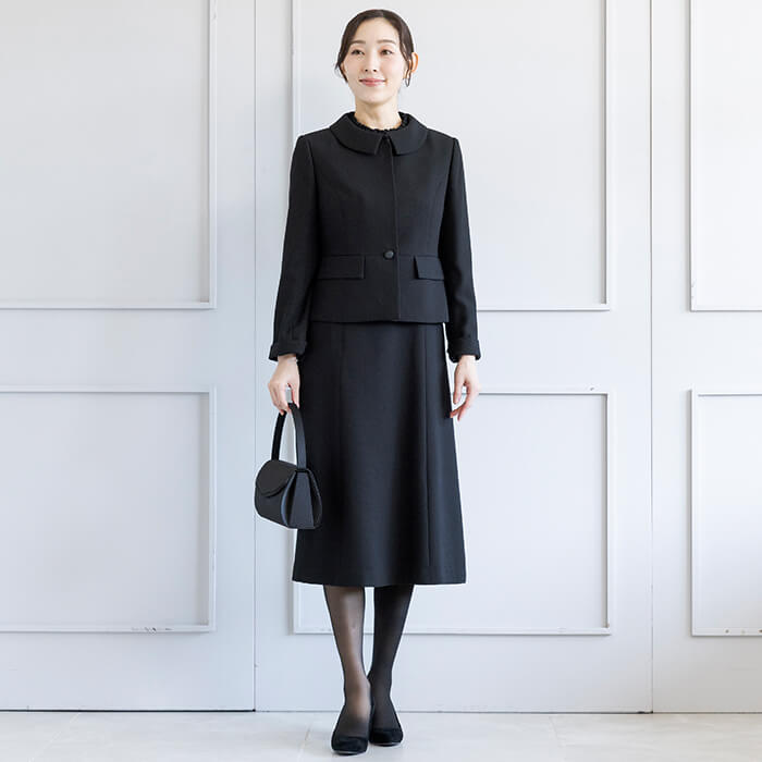 喪の席はもちろん、アクセサリーをコーディネートして学校関連のセレモニースーツにもおすすめ。原型は「少しゆったり」タイプを使用したミセス(40代〜)向け。「標準」に比べてウエストを中心にゆとりを持たせています。基準身長158cm。 ご自宅でのお洗濯は ウォッシャブルフォーマルのお洗濯方法 をご覧下さい。