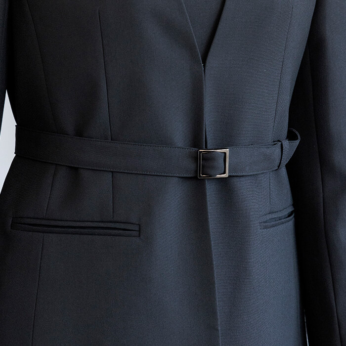 付属のベルトはつけ外しが可能。2通りのジャケットスタイルをお楽しみいただけます。