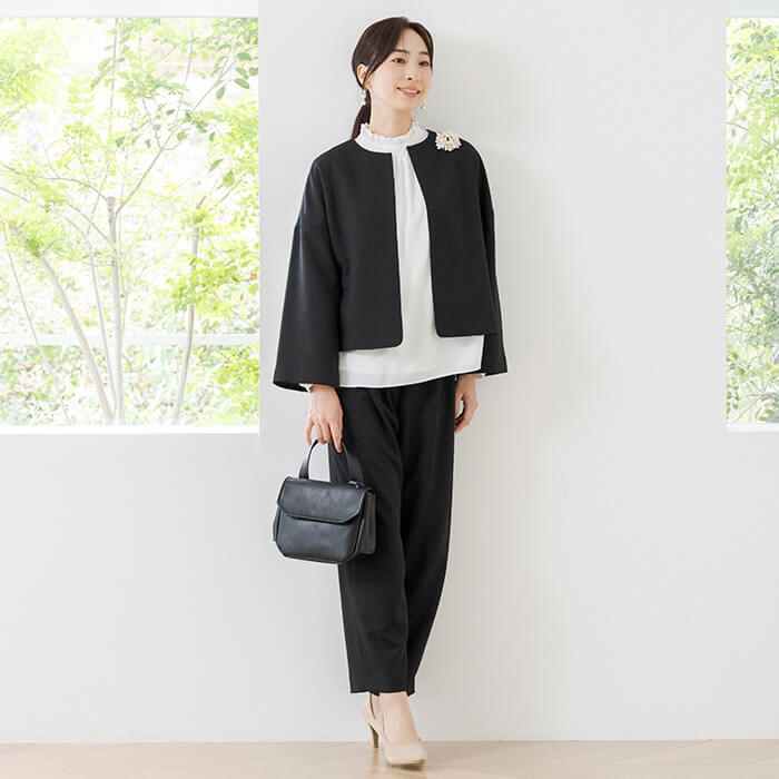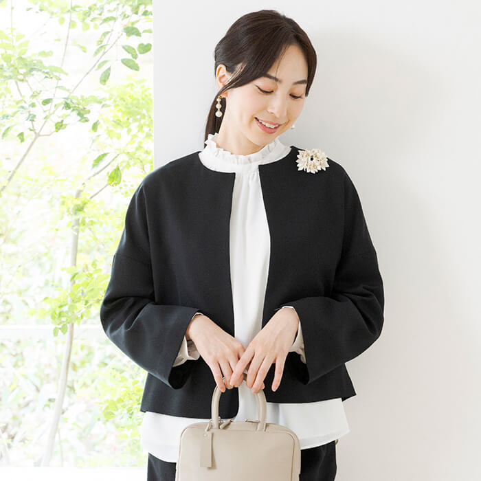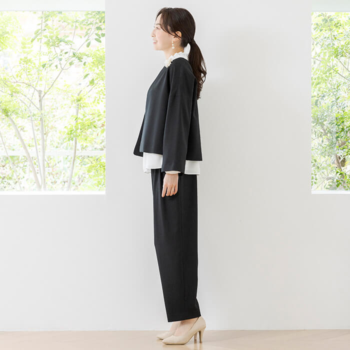 キャリア(30〜40代)を中心とした、メリハリのあるボディラインの方向けの「標準」パターンを使用していますが、ゆったりしたシルエットなので幅広い年代の方に着ていただけます。ご家庭でのお洗濯も可能。ご自宅でのお洗濯はウォッシャブルフォーマルのお洗濯方法をご覧下さい。