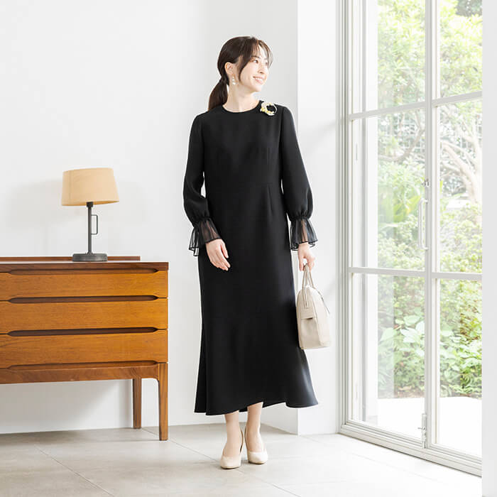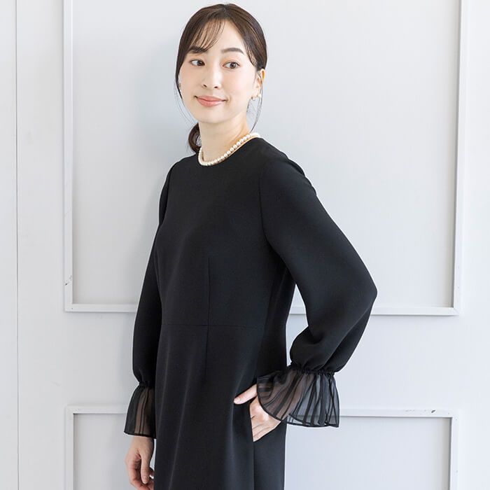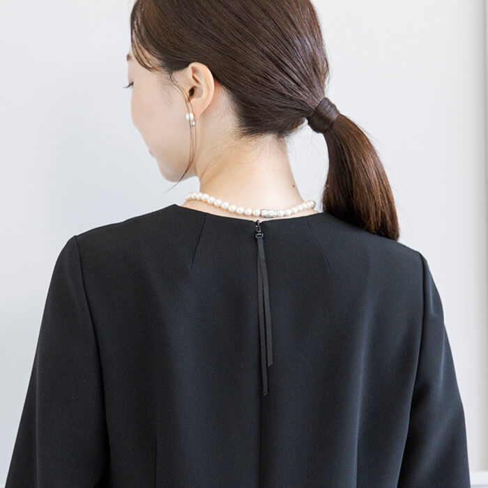 ジャケットなしでも準礼装として安心して着用できる”デザインワンピース”シリーズの第3弾。 さりげないディティールが生む、洗練された大人の雰囲気が魅力。 喪のシーンはもちろんのこと、卒入学式や七五三にも着回しができます。 「フォーマル服は1回しか着られない」という悩みを解決する、オールシーズン頼れるワンピース。