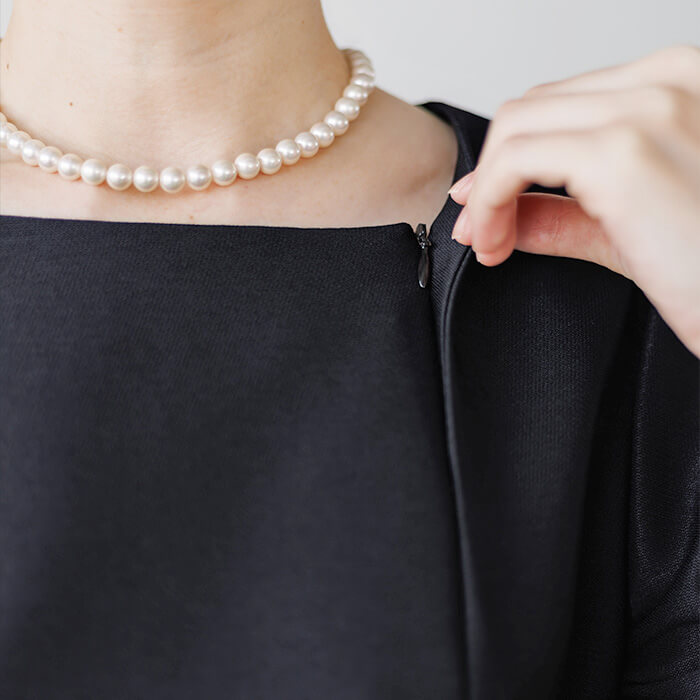 ワンピースの前開きファスナーで、ストレスのなくお1人でも楽に着脱が可能。上品な見栄えと実用性を両立させたデザインに仕上げました。
