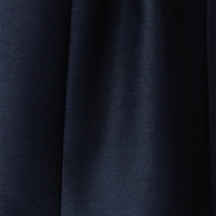 ワンピースは、セミフレアのラインが描く緩やなやな揺らぎが魅力。女性らしいしなやかさをまといながら、前開きファスナー仕様で着脱もスムーズに。見た目の美しさと実用性を両立させています。フォーマルの中に“今”の“エレガンス”を感じさせる1着です。
