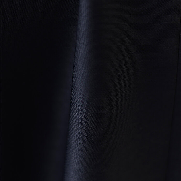 トリアセテート特有の深みのある黒に上品で美しい微光沢を重ね、格式がありながら洗練された印象に。切り替えで使用しているサテンは、全体を引き締める効果を持たせました。