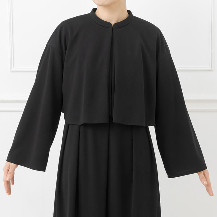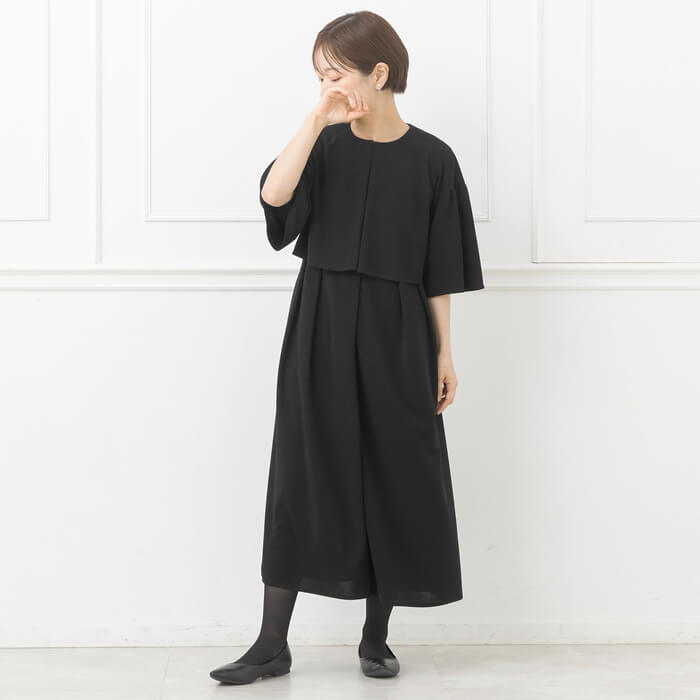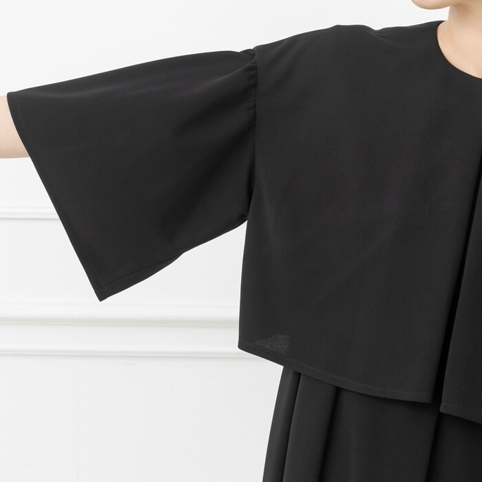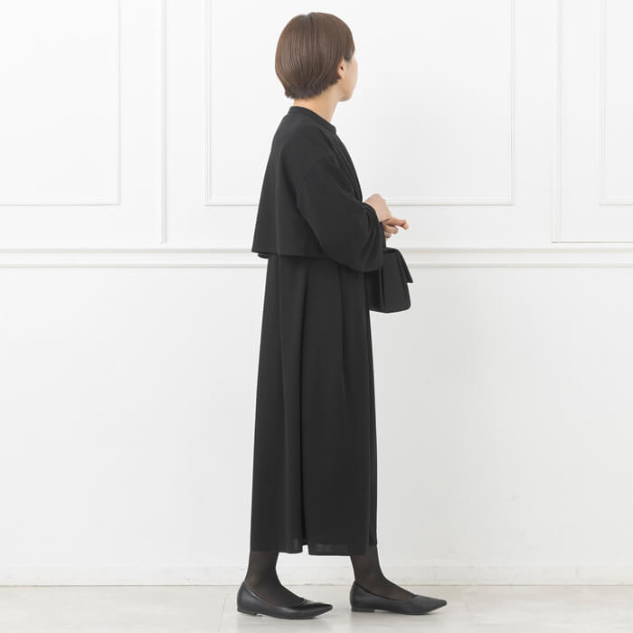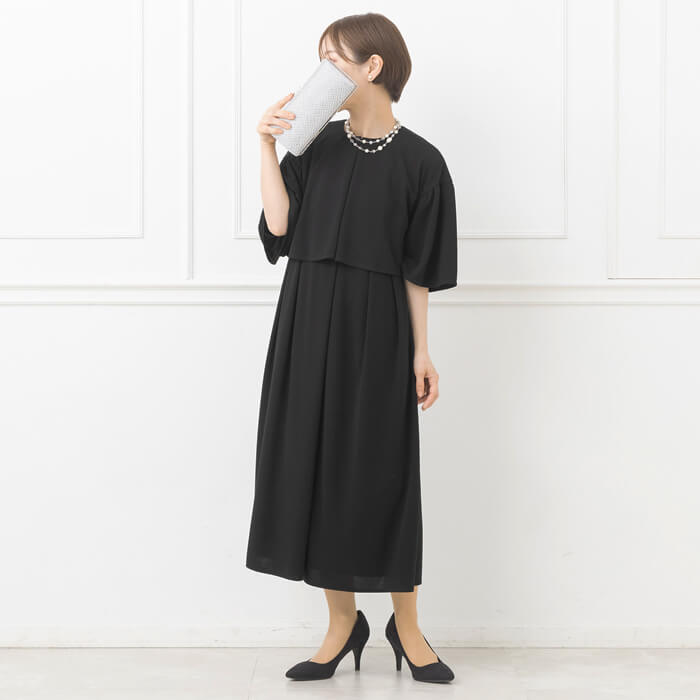 全ての女性をさりげなく、可愛らしく見せてしまう、大人かわいいブラックフォーマルが完成。 低身長の方が着ても可愛いすぎず、クラシカルなスタイルが落ちついた女性の雰囲気を作ります。