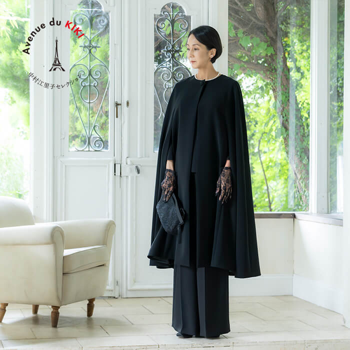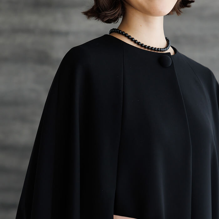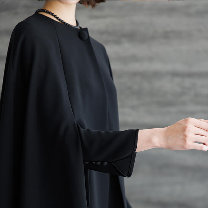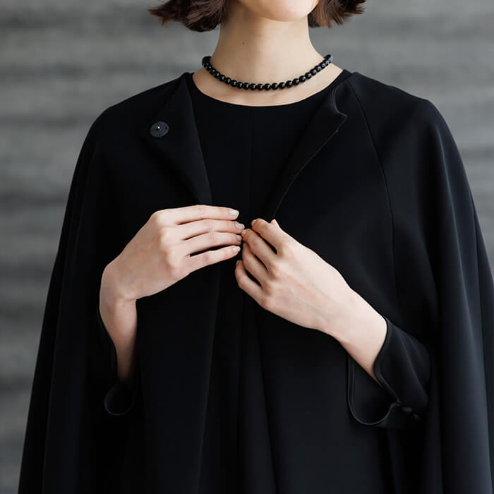 「悲しみの席では、敬う気持ちを大切に、失礼にならない装いが適切です。ケープはその点でも和装のような雰囲気があってふさわしいと思います」