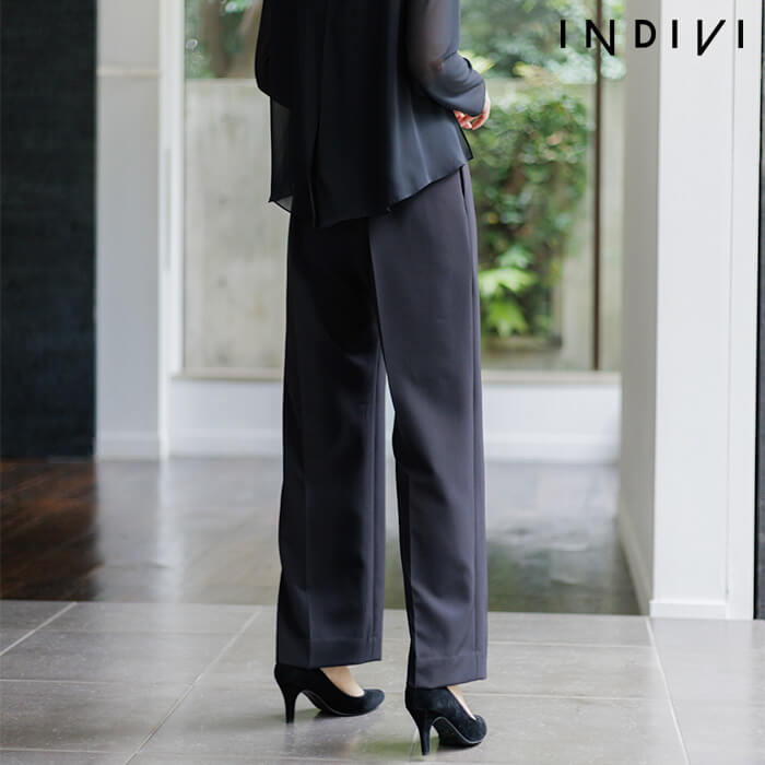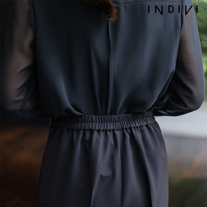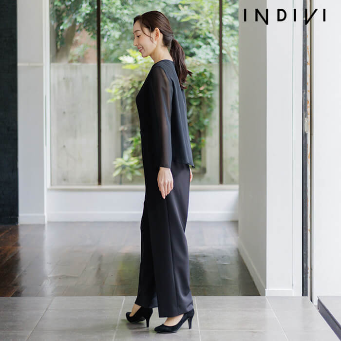 INDIVI 腰周りすっきり見せる、着回し自在オールインワン