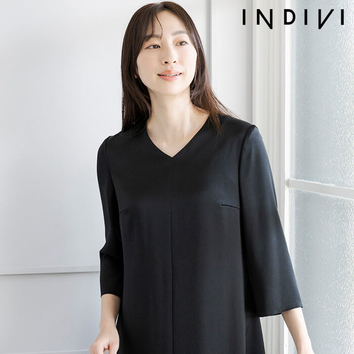 都会的で洗練されたキャリアブランドINDIVI「unlimited line」のワンピース。