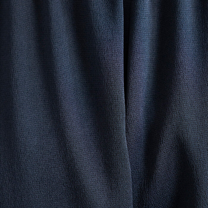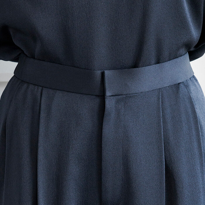 上質さをさりげなく纏える、大人のためのワイドパンツ。落ち感のあるさらりとした生地が、気になるラインを拾わず、美しく脚をまっすぐに見せてくれます。 フロントにはタックを施し、セレモニーやオフィススタイルにもふさわしい端正な印象に。裏地のない軽やかな仕立てながら、季節を問わず快適に着用できるのも魅力。さっと履くだけで品よく整う一本です。