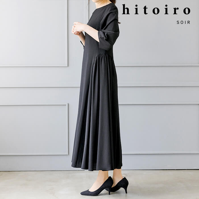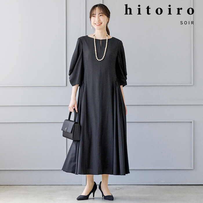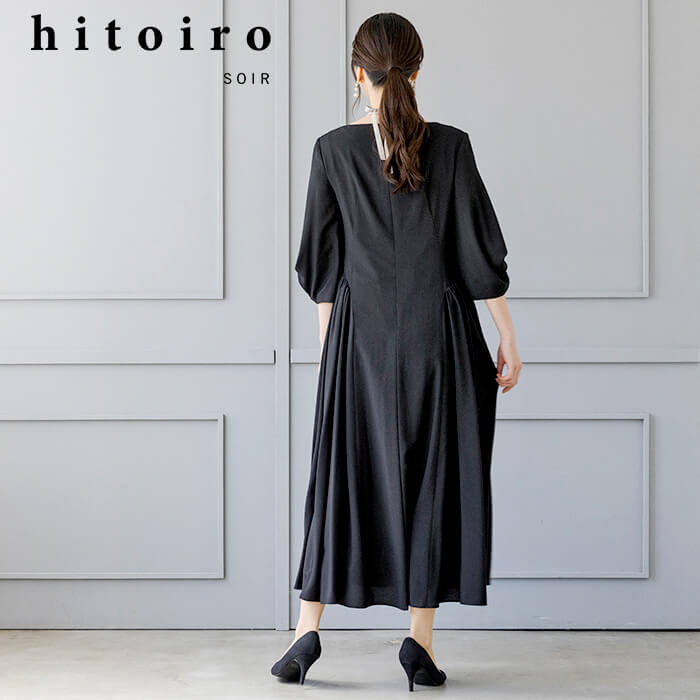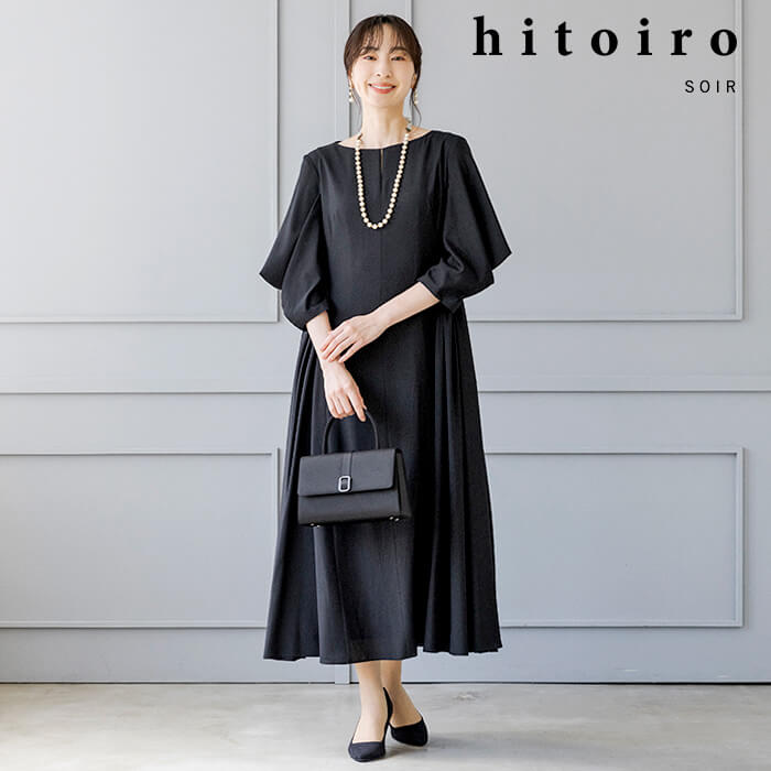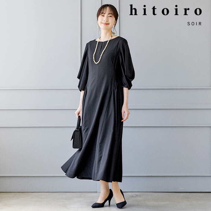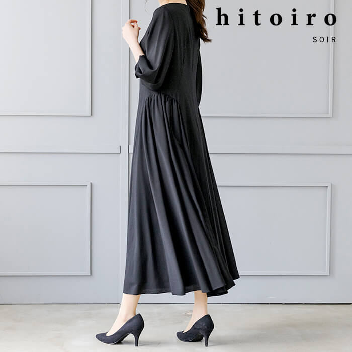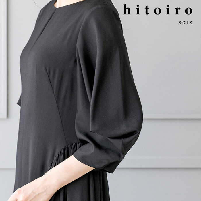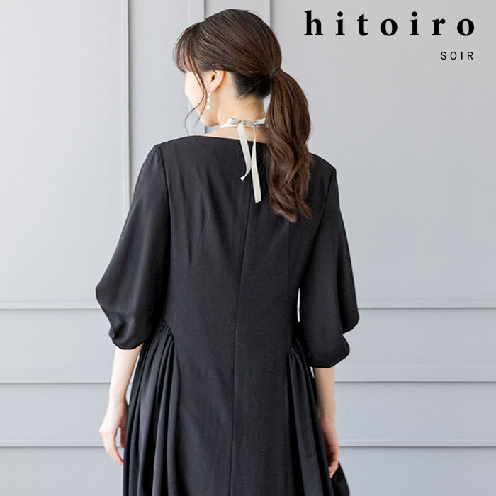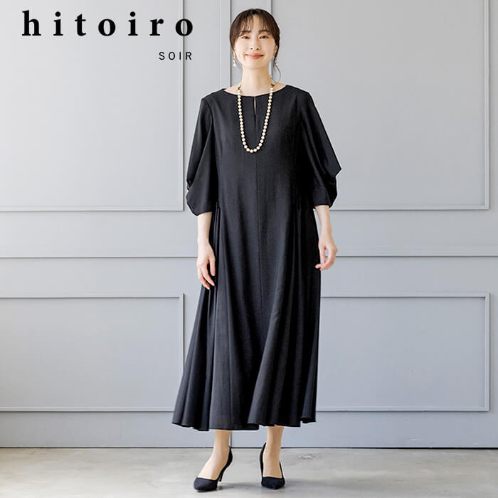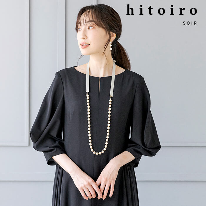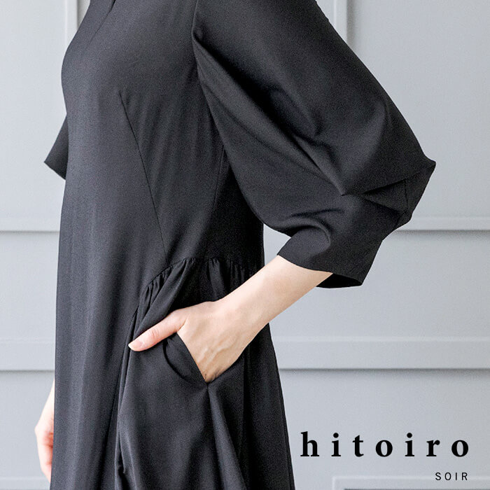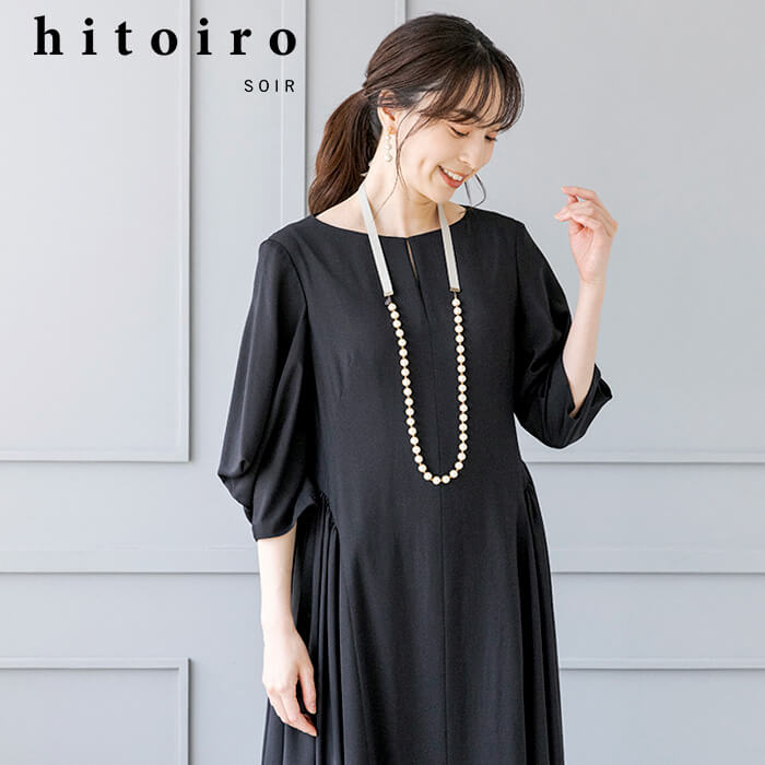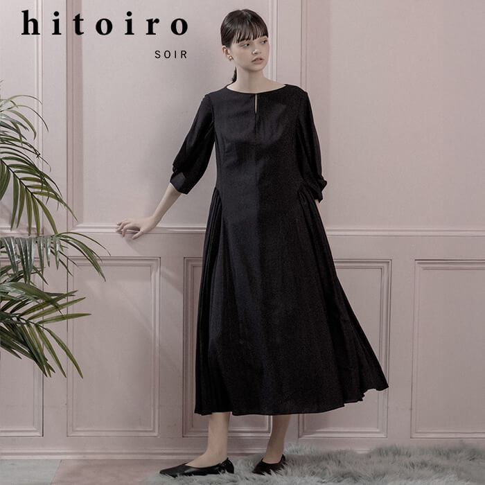 『特別な日も私の日常に、私が着たい服』。『hitoiro SOIR(ヒトイロソワール)』は、ディテールを楽しめる色『黒』をイメージカラーに、かしこまりすぎず、リラックス感がありながらも大人のドレッシーさを感じられるフォーマルメーカーならではの¨大切な日に着たい黒の洋服¨。