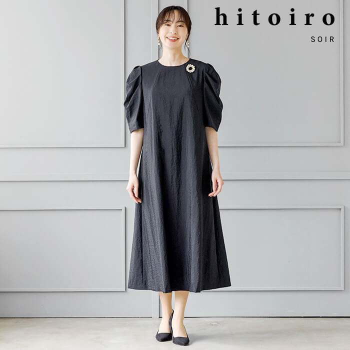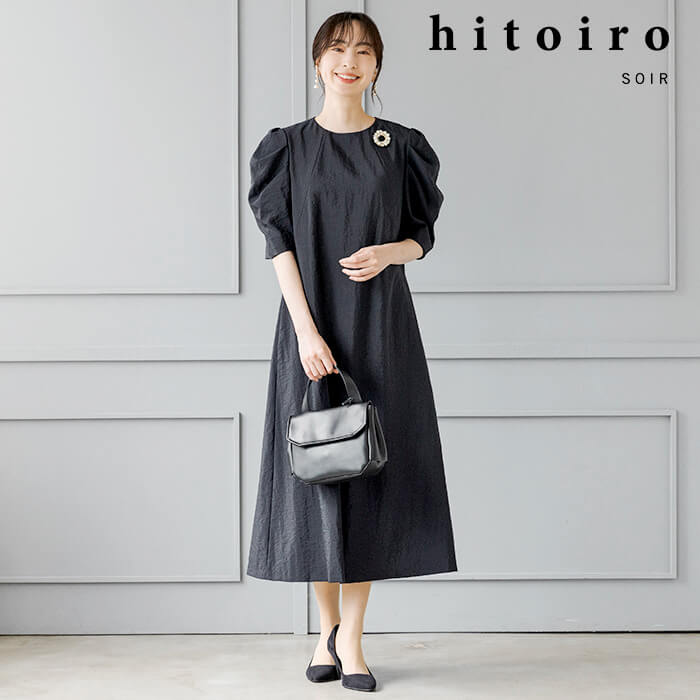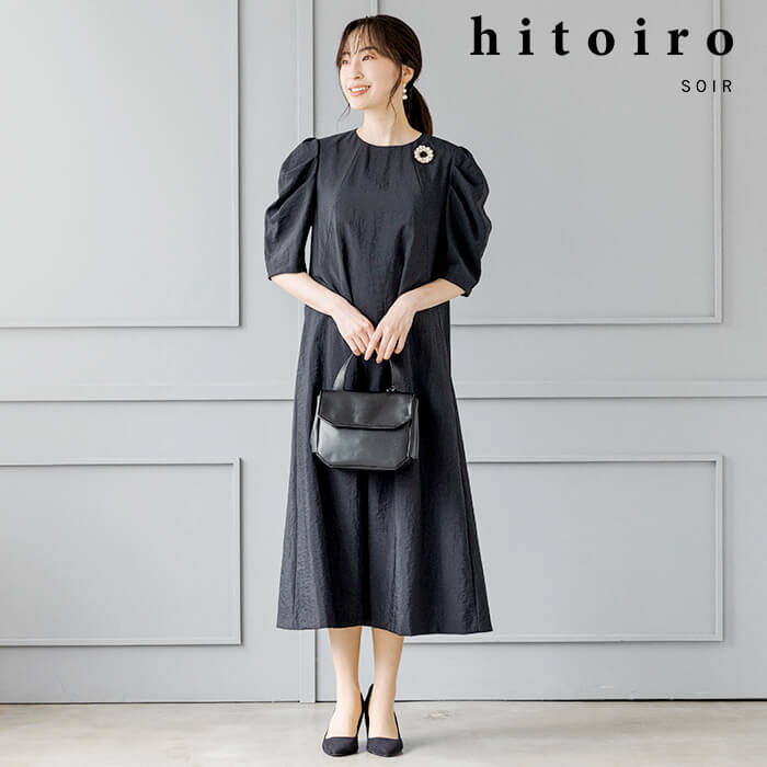 『特別な日も私の日常に、私が着たい服』。『hitoiro SOIR(ヒトイロソワール)』は、ディテールを楽しめる色『黒』をイメージカラーに、かしこまりすぎず、リラックス感がありながらも大人のドレッシーさを感じられるフォーマルメーカーならではの¨大切な日に着たい黒の洋服¨。
