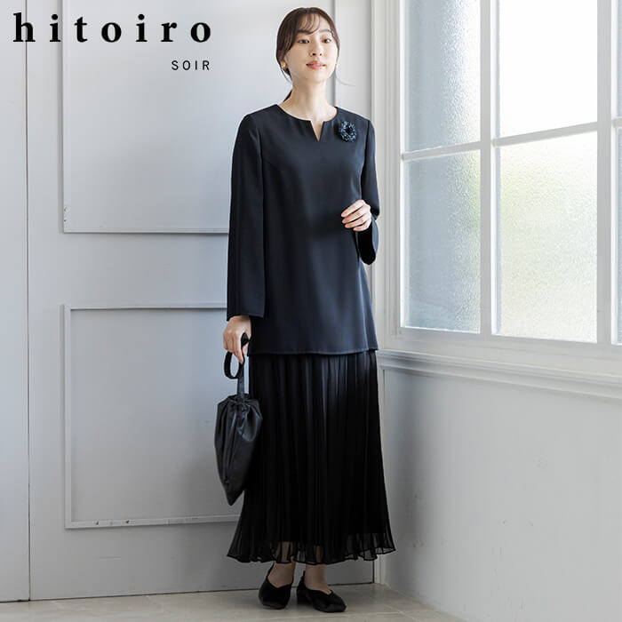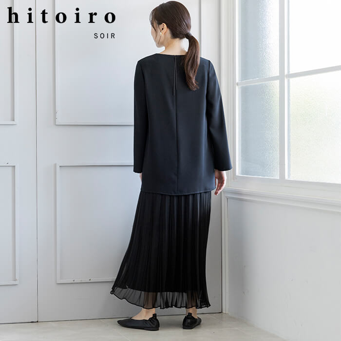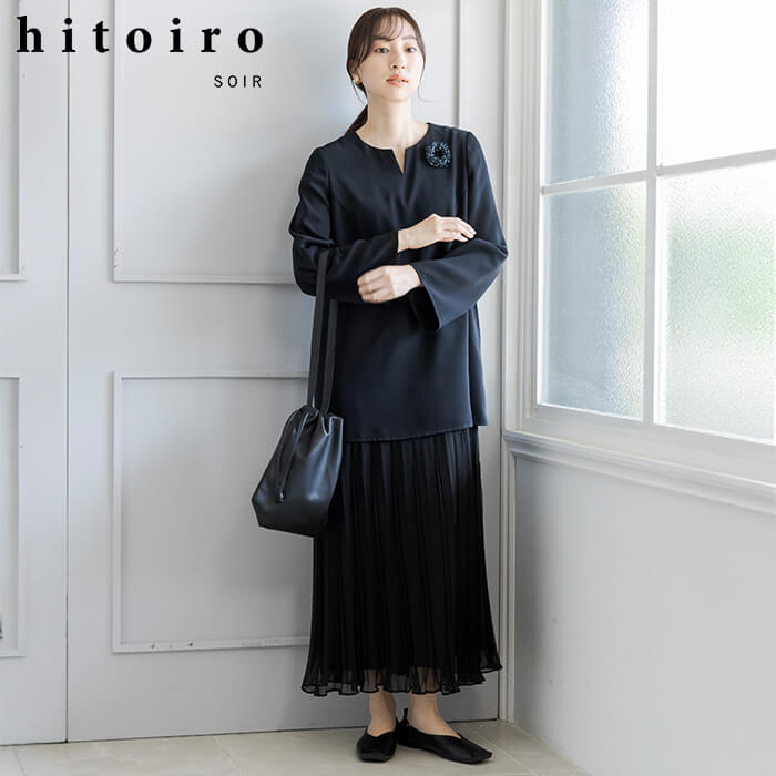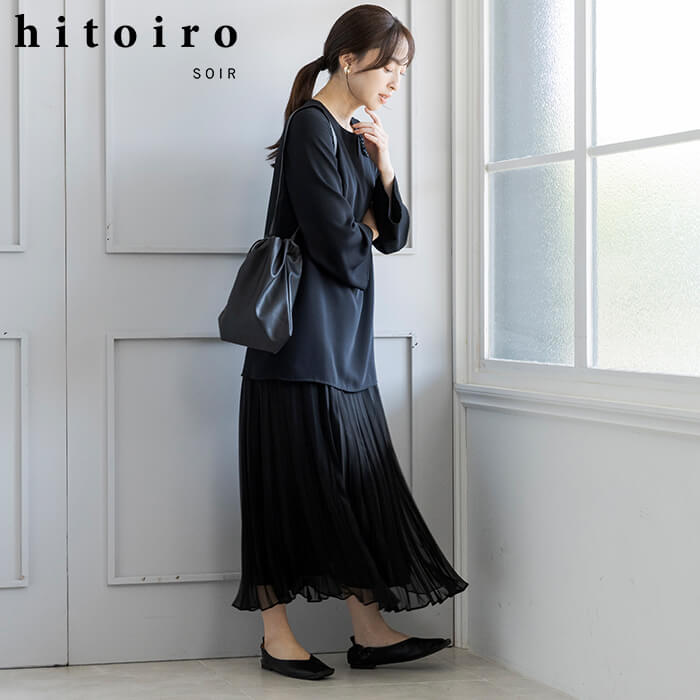 『特別な日も私の日常に、私が着たい服』。『hitoiro SOIR(ヒトイロソワール)』は、ディテールを楽しめる色『黒』をイメージカラーに、かしこまりすぎず、リラックス感がありながらも大人のドレッシーさを感じられるフォーマルメーカーならではの¨大切な日に着たい黒の洋服¨。