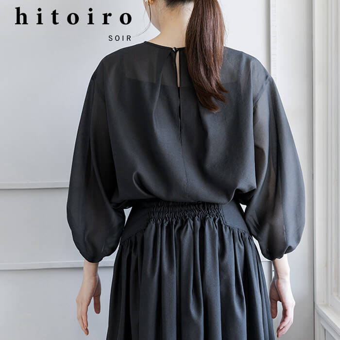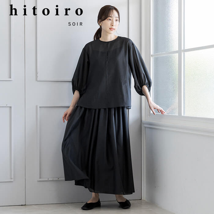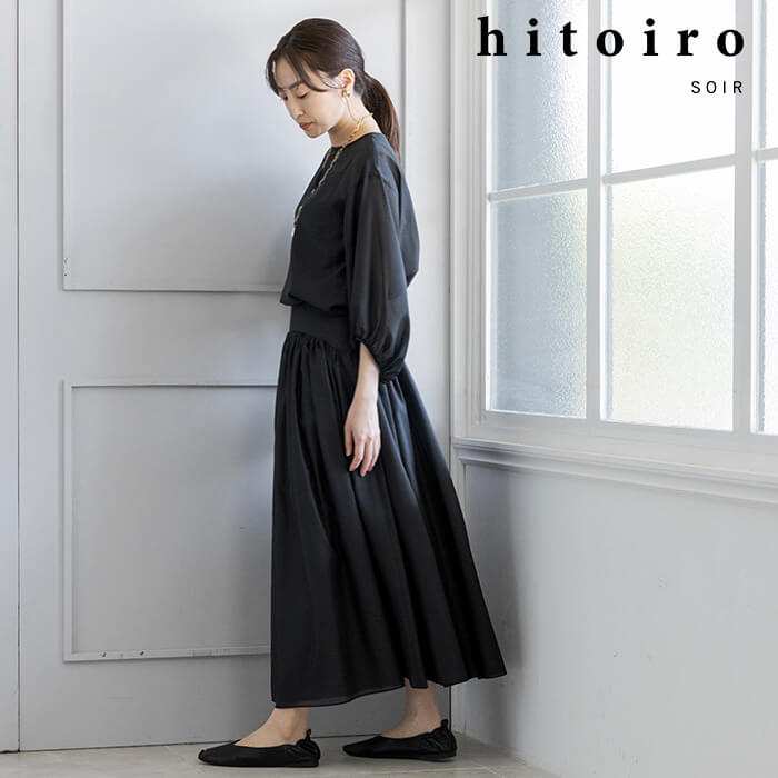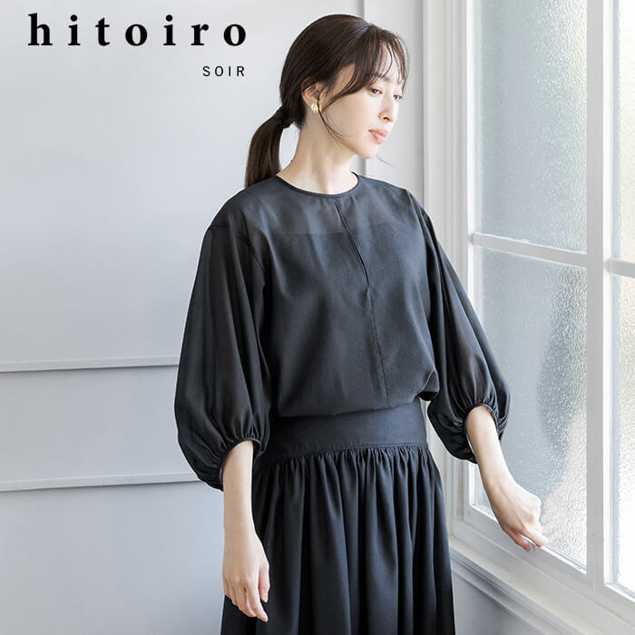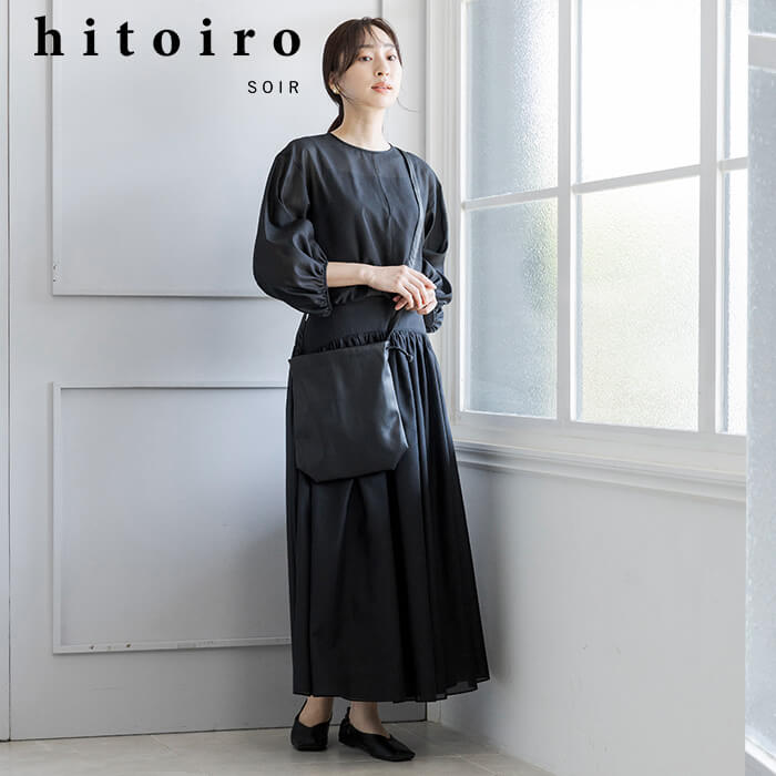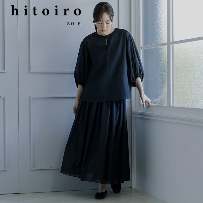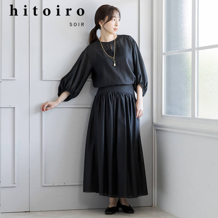『特別な日も私の日常に、私が着たい服』。『hitoiro SOIR(ヒトイロソワール)』は、ディテールを楽しめる色『黒』をイメージカラーに、かしこまりすぎず、リラックス感がありながらも大人のドレッシーさを感じられるフォーマルメーカーならではの¨大切な日に着たい黒の洋服¨。