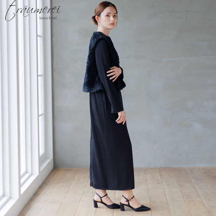 トロイメレイ チュール刺繍ベストとシンプルサテンドレス