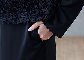 ファスナーラインを目立たないように仕上げる「コンシールファスナー」を使用。デザインに影響しないファスナーを使用する事で、全体のイメージをすっきりとまとめます。