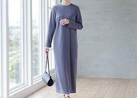 シンプルで美しいシルエットが特徴。単品でも、身体のラインを拾わず、サイドに施されたダーツが自然な立体感を生み出し、引き締まった印象を与えます。クローゼットに1着あると便利な万能ドレスです。