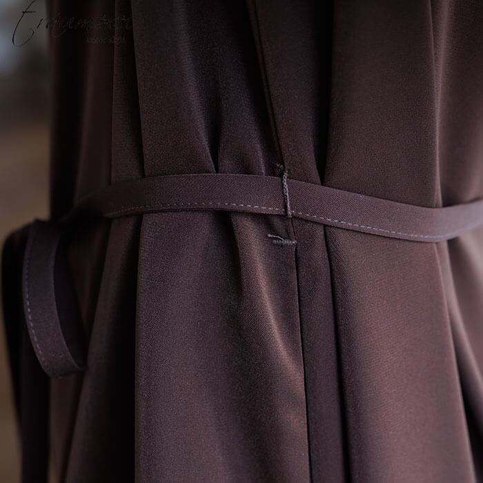 サイズ対応を可能にする、程よい長さに仕上げた同素材ベルト。ドレスとしてのイメージをキープできるよう、少し長めに設定してあります。