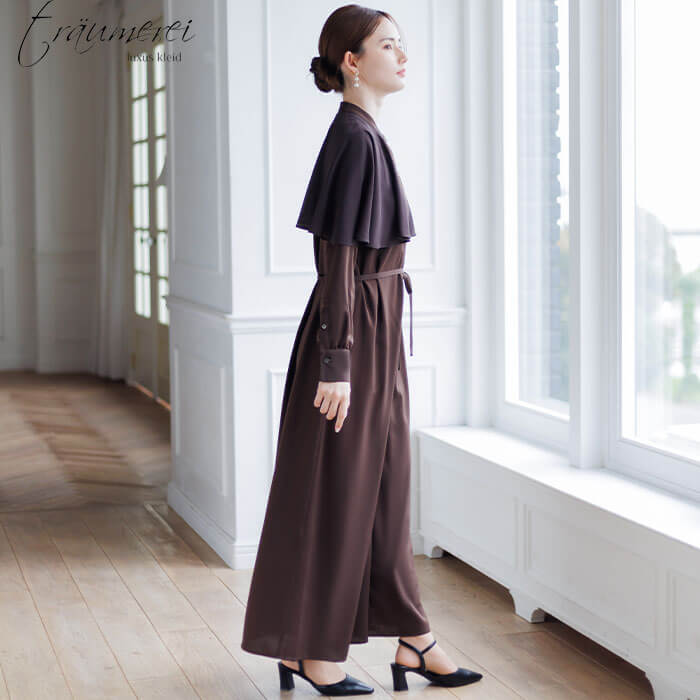 WEB限定|ケープカラーオールインワンドレス