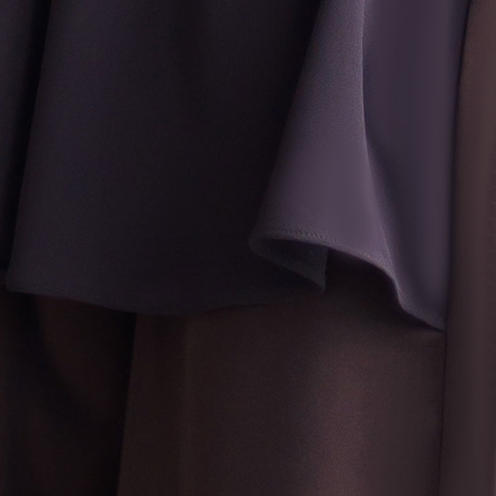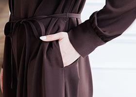 しっかりとした厚みを持ちながら、滑らかさと微光沢が特徴のサテン素材。程よくハリがあり、上質感を持ちながら動きやすい柔らかさを兼ね備えています。