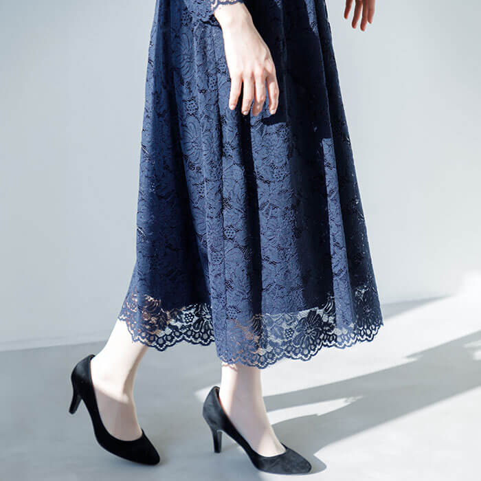 柄の大きさや透け感にこだわり、ドレスに最適なレースをセレクトしました。