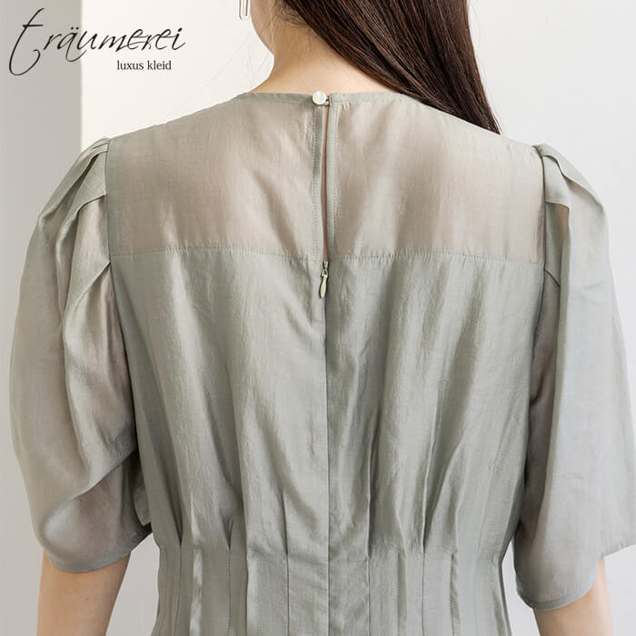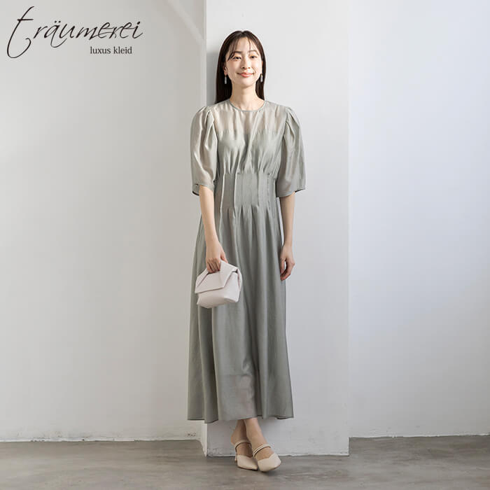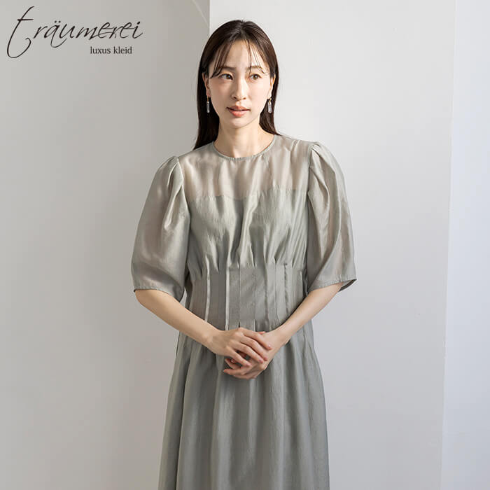 大人の上品さを引き立てるナチュラルオーガンジーを使用したドレス。歩くたびにふんわりと揺れる軽やかな素材が風をはらみ、快適な着心地を叶えます。