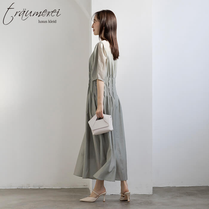 着るだけでシルエットが決まる、ウエストタックドレス