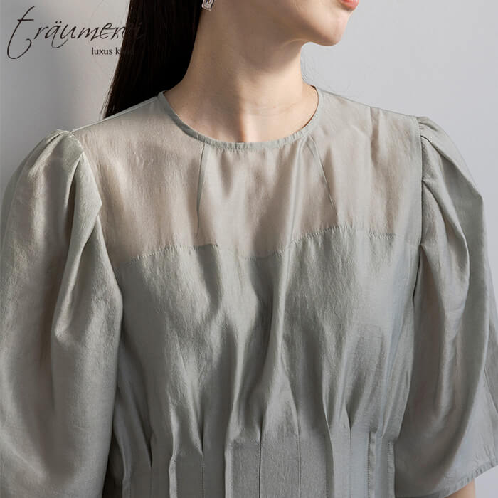 ほんのりとした上品な光沢と、空気を含むような軽やかさ。動くたびに表情が生まれ、華やかなシーンに透明感を演出します。