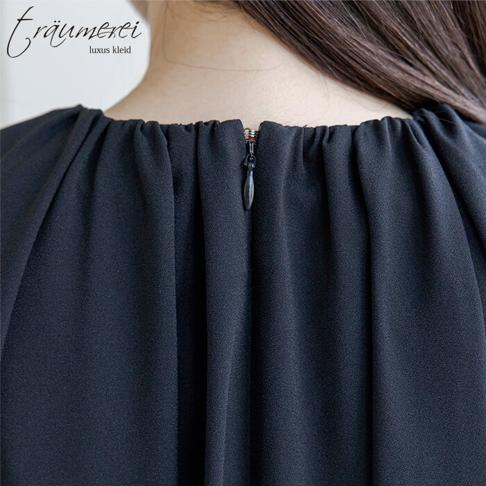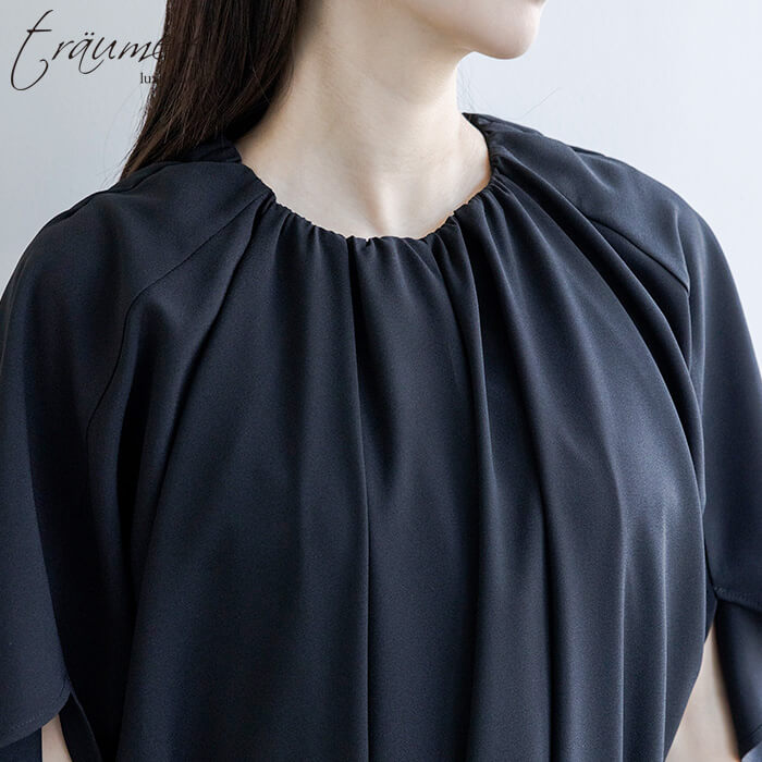 やわらかなドレープが動きのある表情をプラス。気になる二の腕も自然にカバーしてくれます。