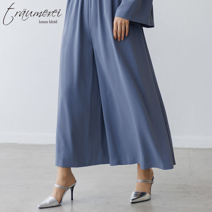 ワイドパンツは動くたびに優雅に揺れ、ドレスのような上品さと動きやすさを両立。身体が泳ぐようなゆったり感がありながら、ストンと落ちるシルエットで自然な体型カバーを叶えます。