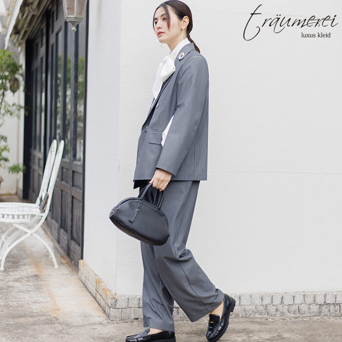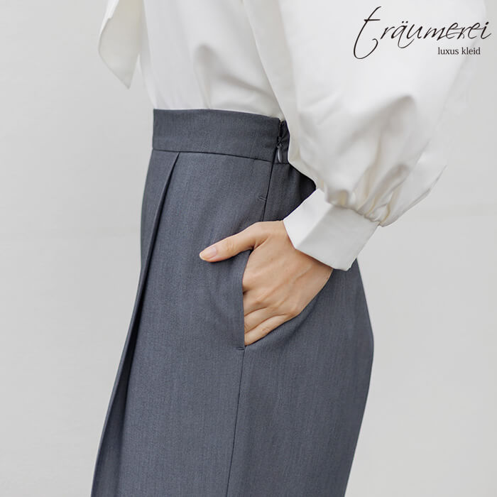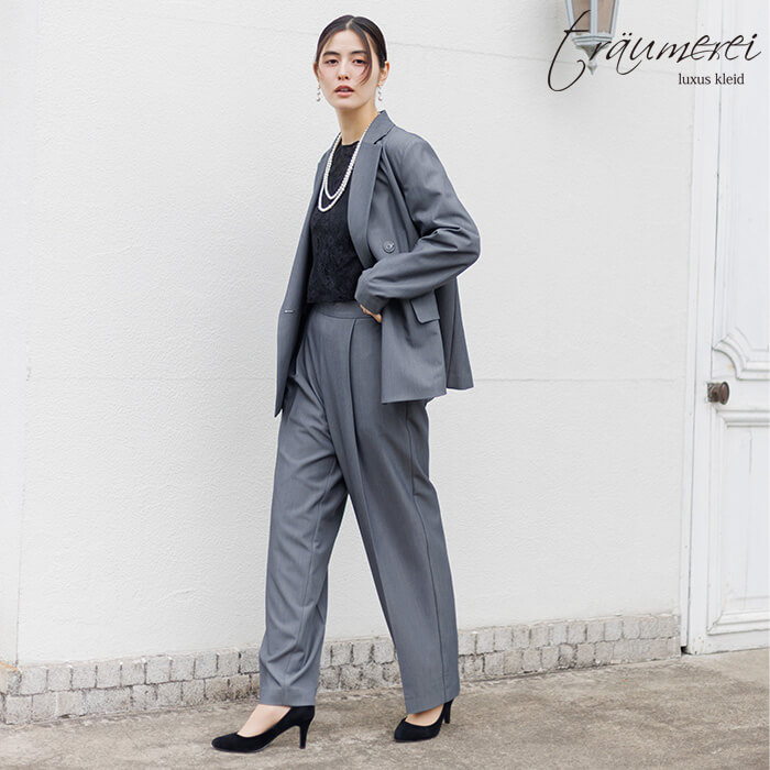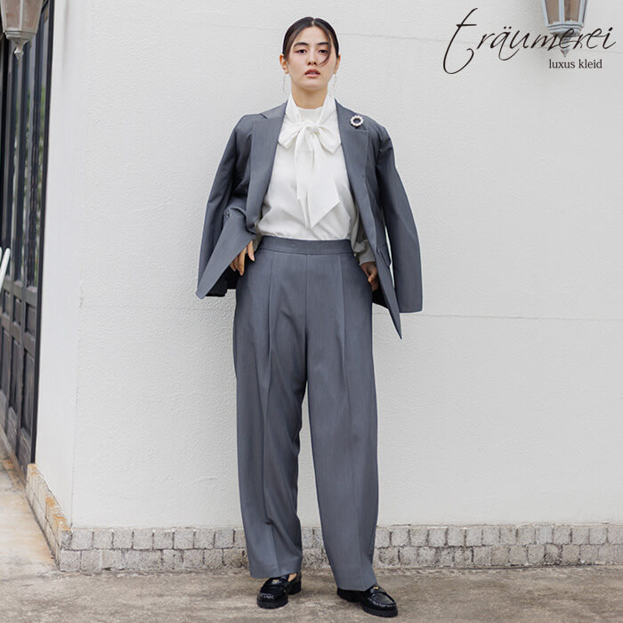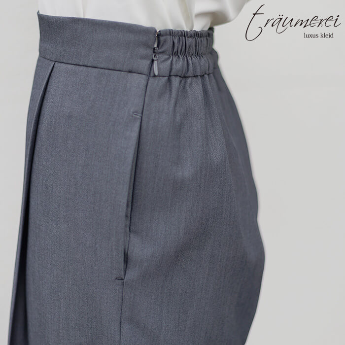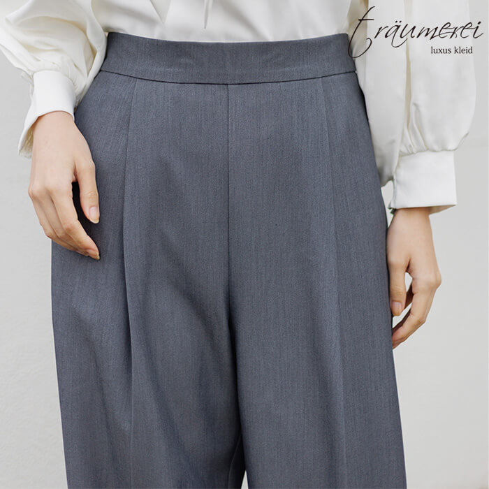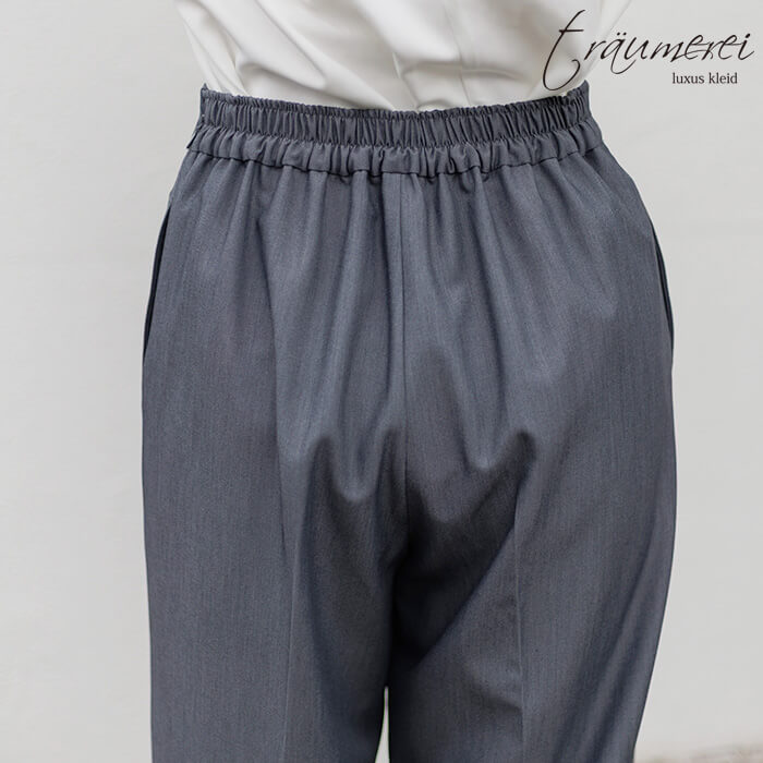 ハリのある風合いとほどよい光沢感が特徴の、セレモニーやオフィスにもふさわしい上品なギャバ素材を使用。柔らかく伸びてしっかり戻るストレッチ性で、長時間の着用でもシワになりにくく、毎日穿いてもきれいなシルエットをキープします。