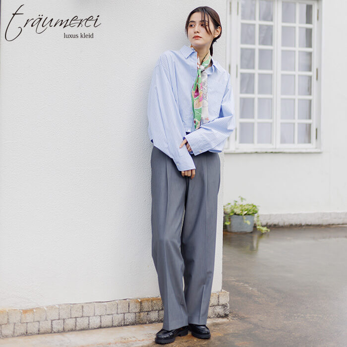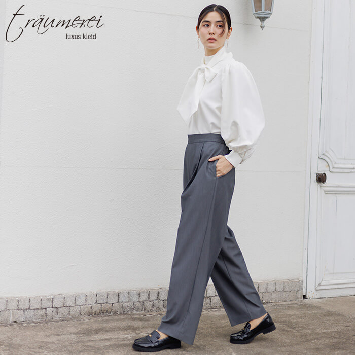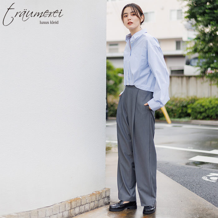 トロイメレイ センタープレス入りきれい見えワイドパンツ