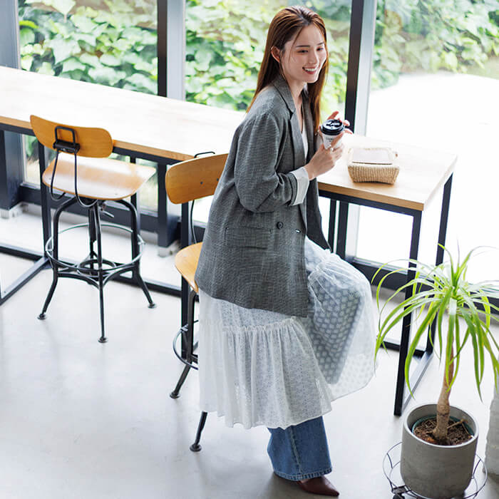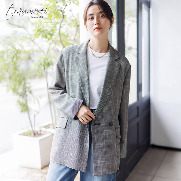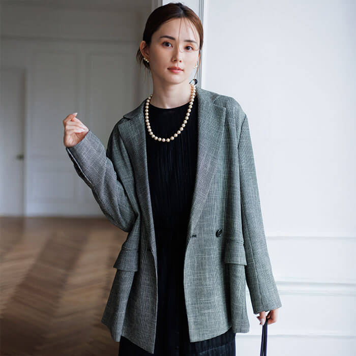 今日の私を、少しだけ特別に。「トロイメレイ」から、こなれ感と上品さを兼ね備えたジャケットが登場。立体感のある“からみ織”で仕立てたダブルジャケットは、ゆったりとしたオーバーサイズシルエットで、こなれた印象に。