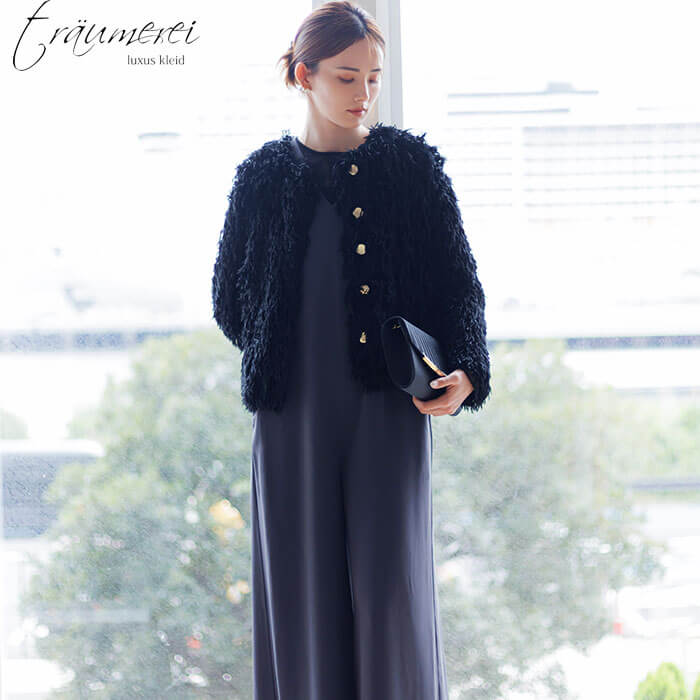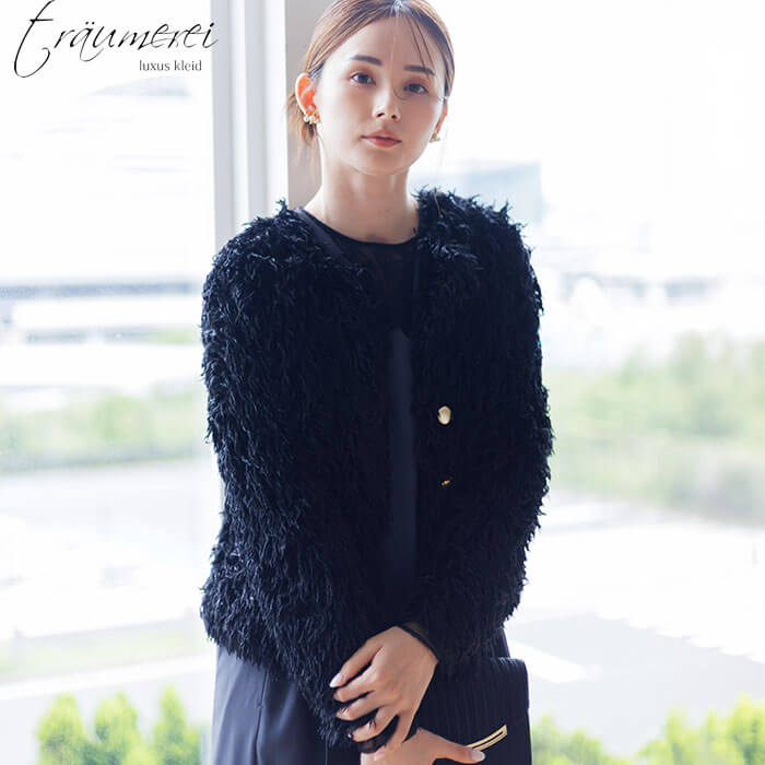 今日の私を、少しだけ特別に。「トロイメレイ」から、オケージョンからデイリーまで幅広く活躍するフェザーニットジャケットが登場。つやっとした金ボタンが上品なアクセントとなったショート丈デザインで、羽織るだけで華やかな装いが完成します。毛足の長めなフェザーは、思わず触れたくなるふわふわな手触り。女性らしい優雅な印象を与えます。